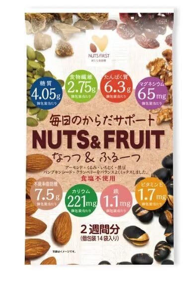 「ハース 糖質管理 ナッツ&フルーツ 25g×14袋」▼4582183365375▼(商品説明)14袋無/25グラム (x 14)/20543・パッケージ個数:1・大切な栄養素をバランスよくそして簡単に。 1袋あたり糖質6.0食物繊維マグネシウムカリウム鉄ビタミンが豊富。・食塩不使用。自然な甘みが味わえます。商品紹介 商品紹介 6種類をミックス アーモンド・クルミ・イチジク・黒大豆・かぼちゃの種・加糖クランベリー入り。 1袋でさまざまな味が楽しめます。 糖質管理 1袋当たり糖質6.0。 ナッツファースト 食事の前や間食に「ナッツを先に食べる」新たな食習慣を提案しています。 原材料・成分 アーモンド、クルミ、イチジク、黒大豆、かぼちゃの種、加糖クランベリー 原材料・成分 アーモンド、クルミ、イチジク、黒大豆、かぼちゃの種、加糖クランベリー