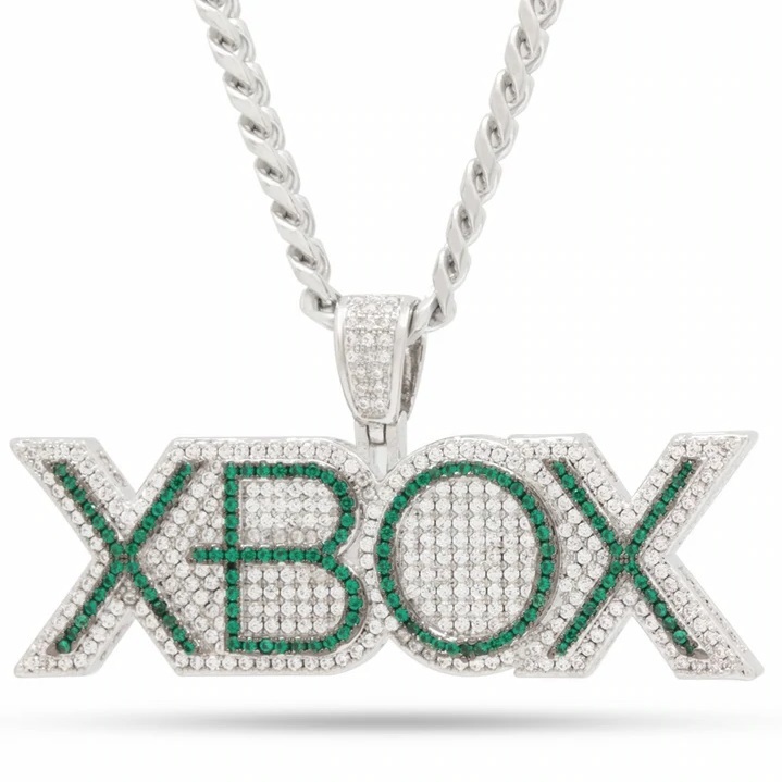 XBOX × KING ICE Emerald Xbox Necklace White Gold Plating