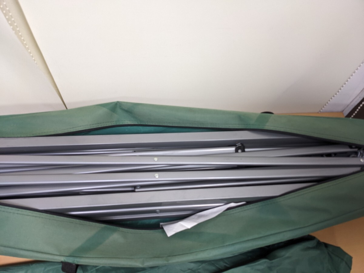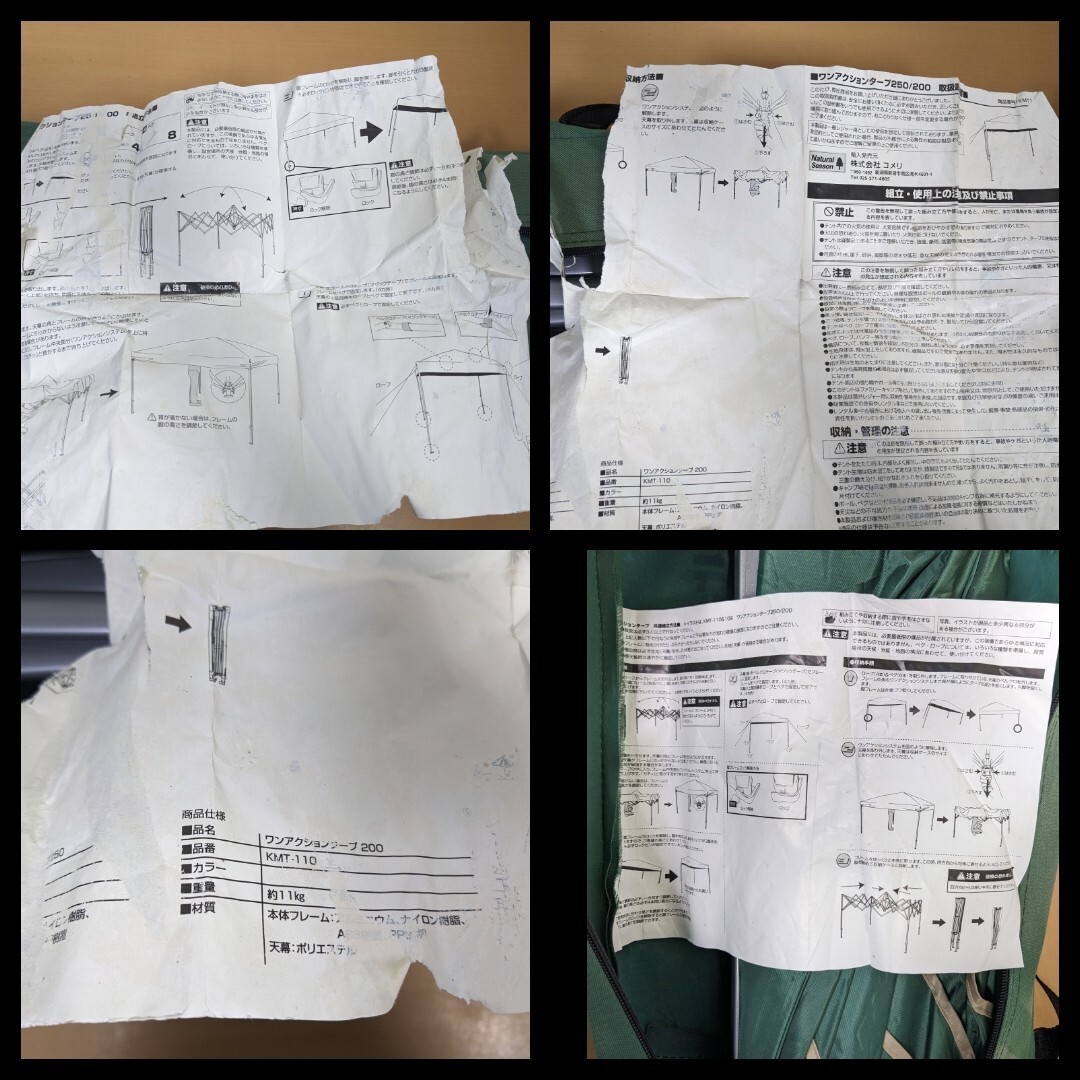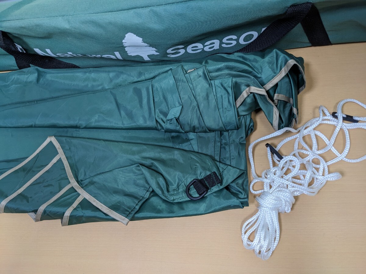 ○付属品の有無分かりませんでした。広げて確認できておりませんので品質保証は無しでお願い致します。使用できる物という事で譲り受けましたが当方で判断できませんでした。生地部分は破れなどないと思いますが、しっかり広げて確認はしておりませんので保証は無しでお願いします。