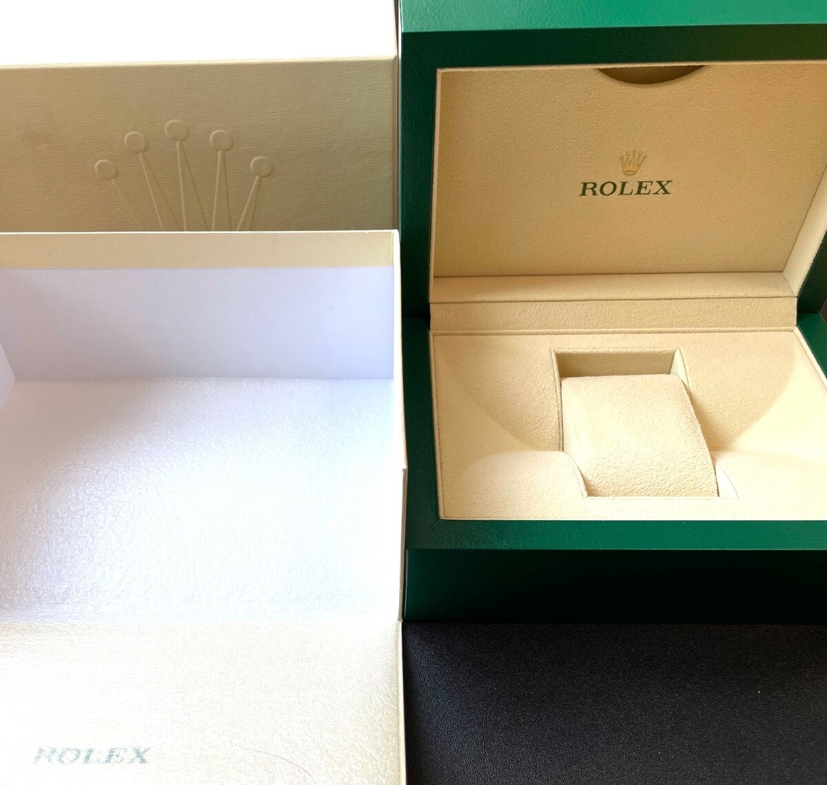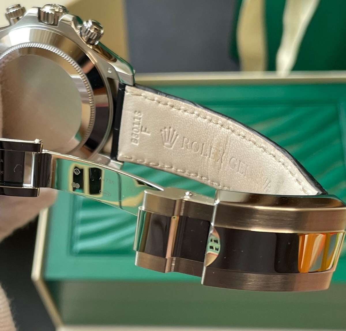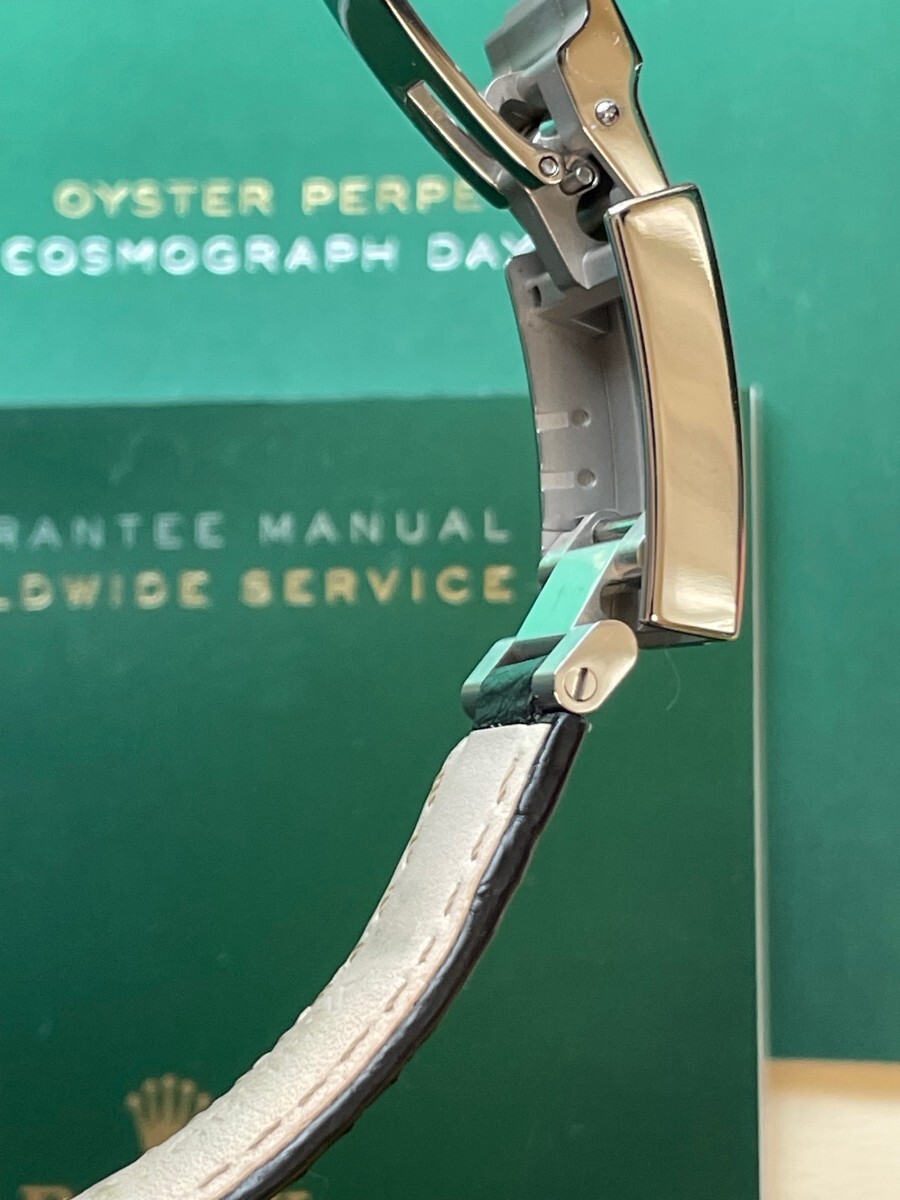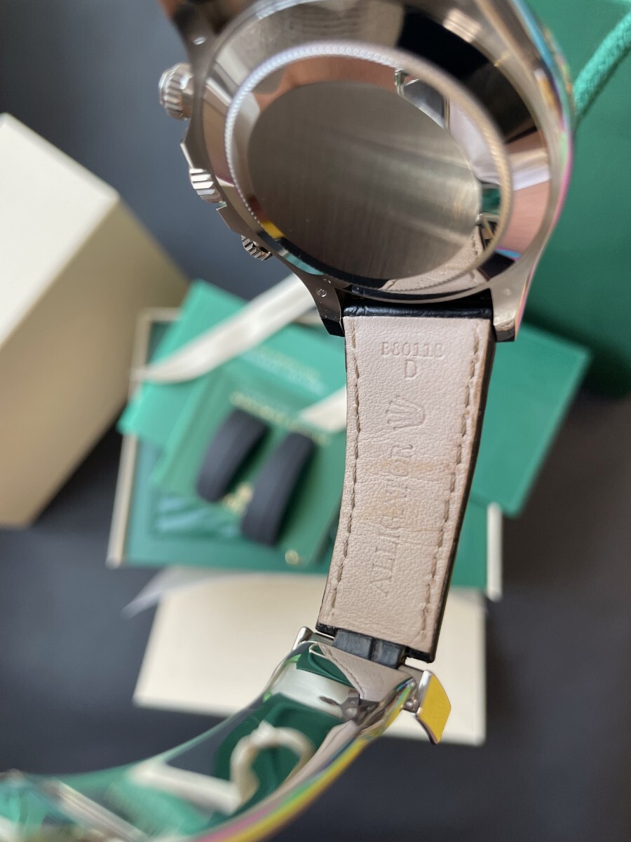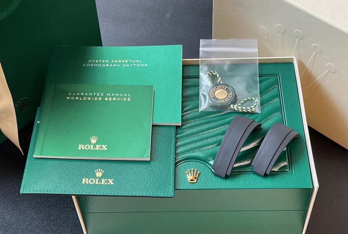 付属品についてですが時計本体以外に、ボックス、冊子、タグ、オイスターフレックスタイプラバーベルト(F/E)、ショッパー等画像4枚目のものを全てお送りいたします。レザーベルトの使用に伴う劣化を避けたい方もいらっしゃるかと思いますので、オイスターフレックスタイプラバーベルトをお付けします。必要な方は組み替えてご利用ください。ベルトを自分でカットして使用するものとは違いますので満足度は高いです。