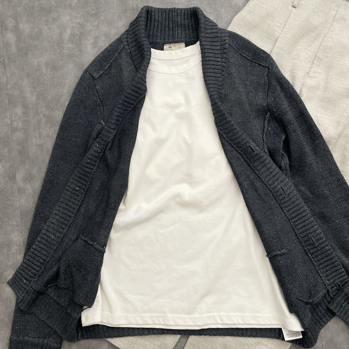 ショールカラーが上品さをプラスし、Tシャツやシャツと合わせて晩夏から秋口の羽織りに最適。
