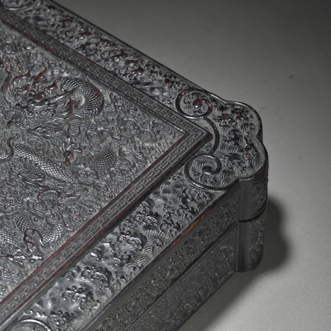 【瓏】老紫檀の木彫 満工龍紋 收納盒 清時代 極細工 手彫り 置物擺件 中国古賞物 古美術 蔵出