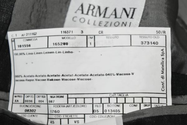 ★ARMANI COLLEZIONI★アルマーニ★人を惹きつけるグレー★洒落た男を演出できる着心地良いリネン麻2釦ピークドラペルのジャケット50/L/LL