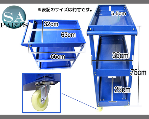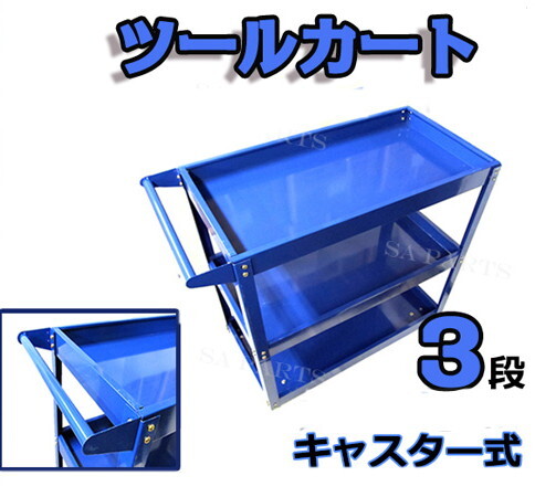 3段 ツール カート キャスター付き 工具 台車 ツール ワゴン ボックス 工具箱 入れ 収納 移動式 ワーキングカート 青 ブルー