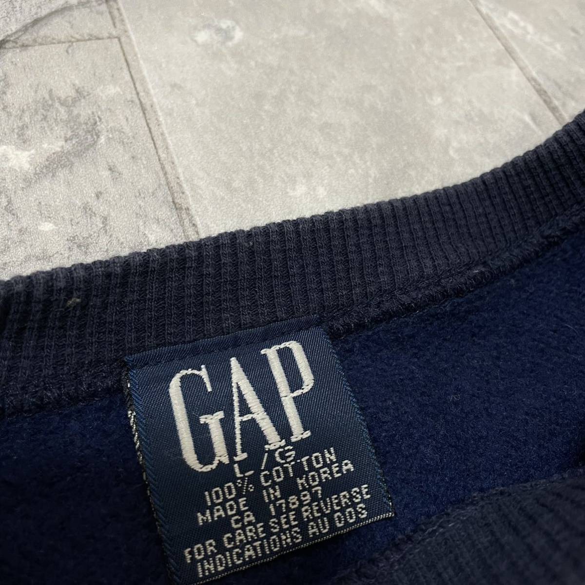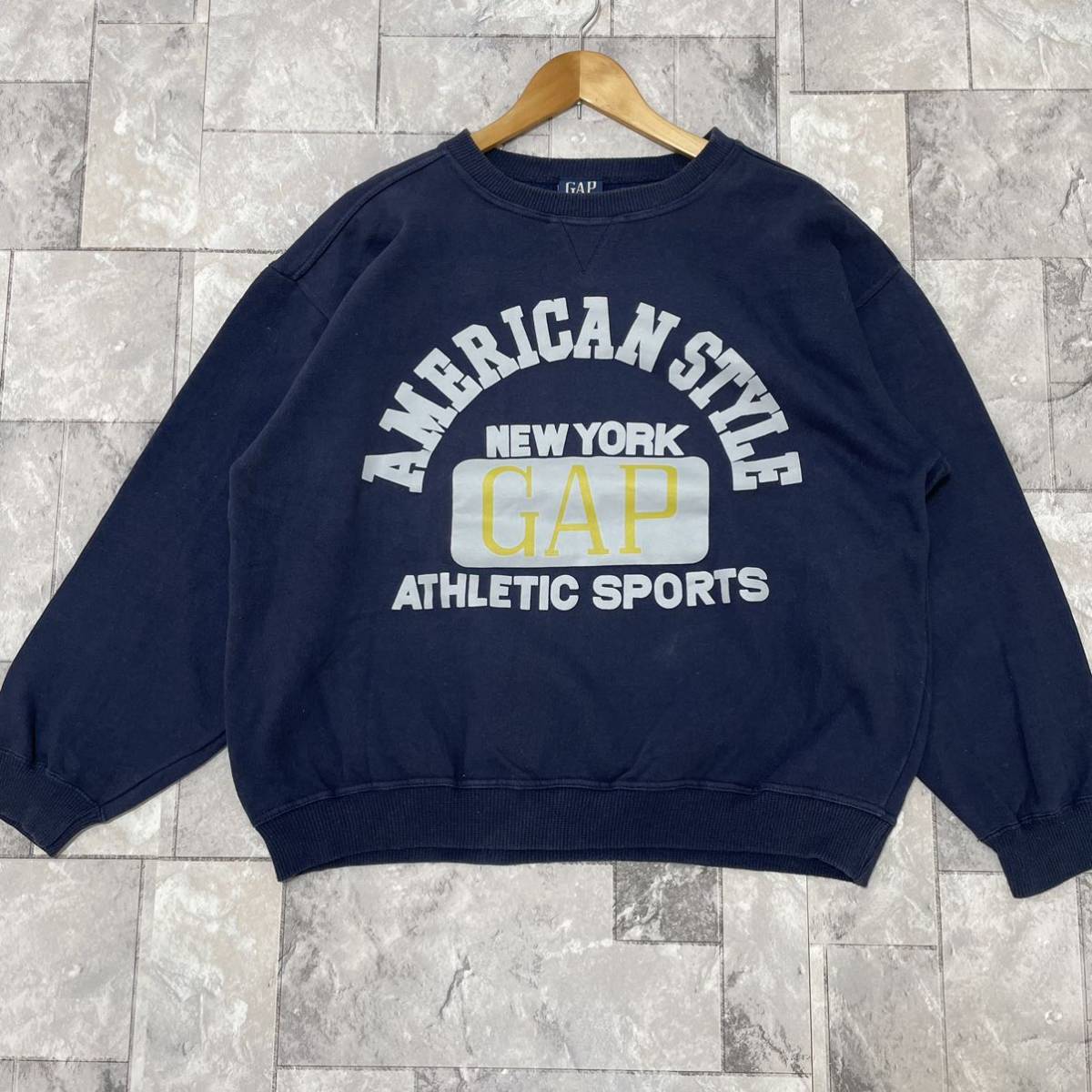 old GAP オールドギャップ スウェット トレーナー Vガゼット ビッグプリント アーチロゴ USA企画 ネイビー サイズL 玉FL3204
