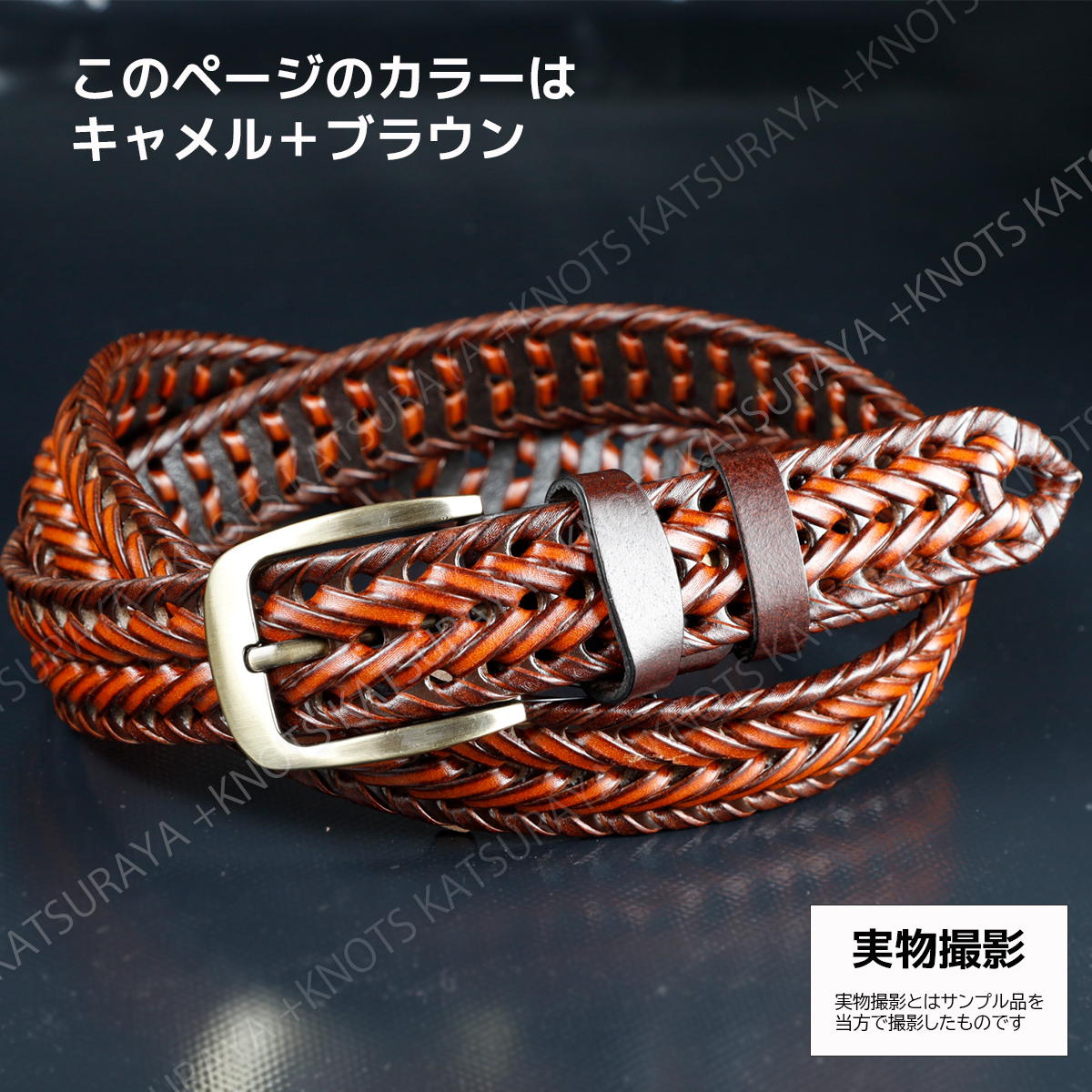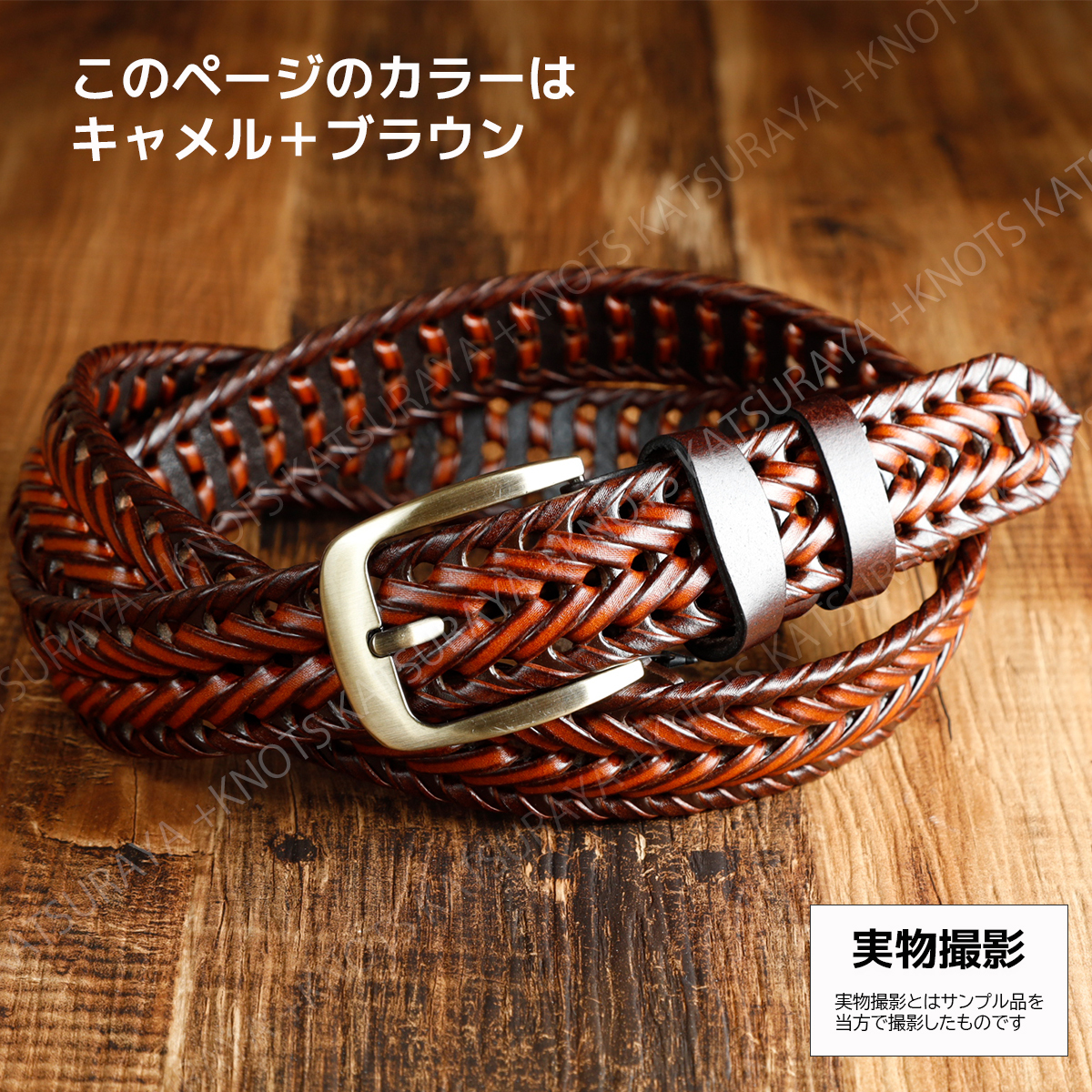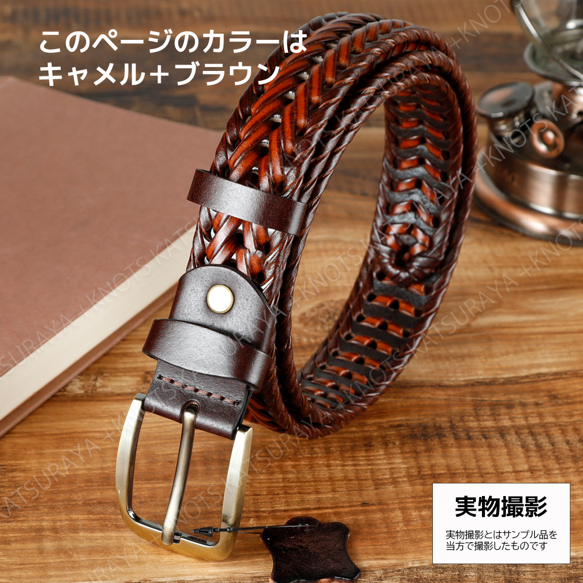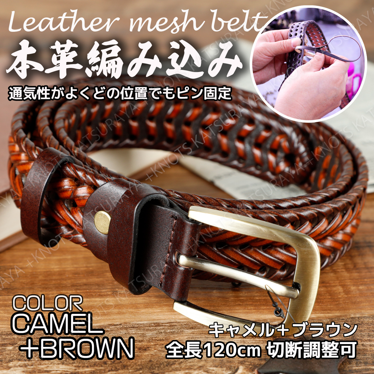 本革 メンズ ベルト★キャメル+ブラウン★編み込み メッシュベルト レザーベルト ビジネス デニム カジュアル スーツ ゴルフ 調整調節a211