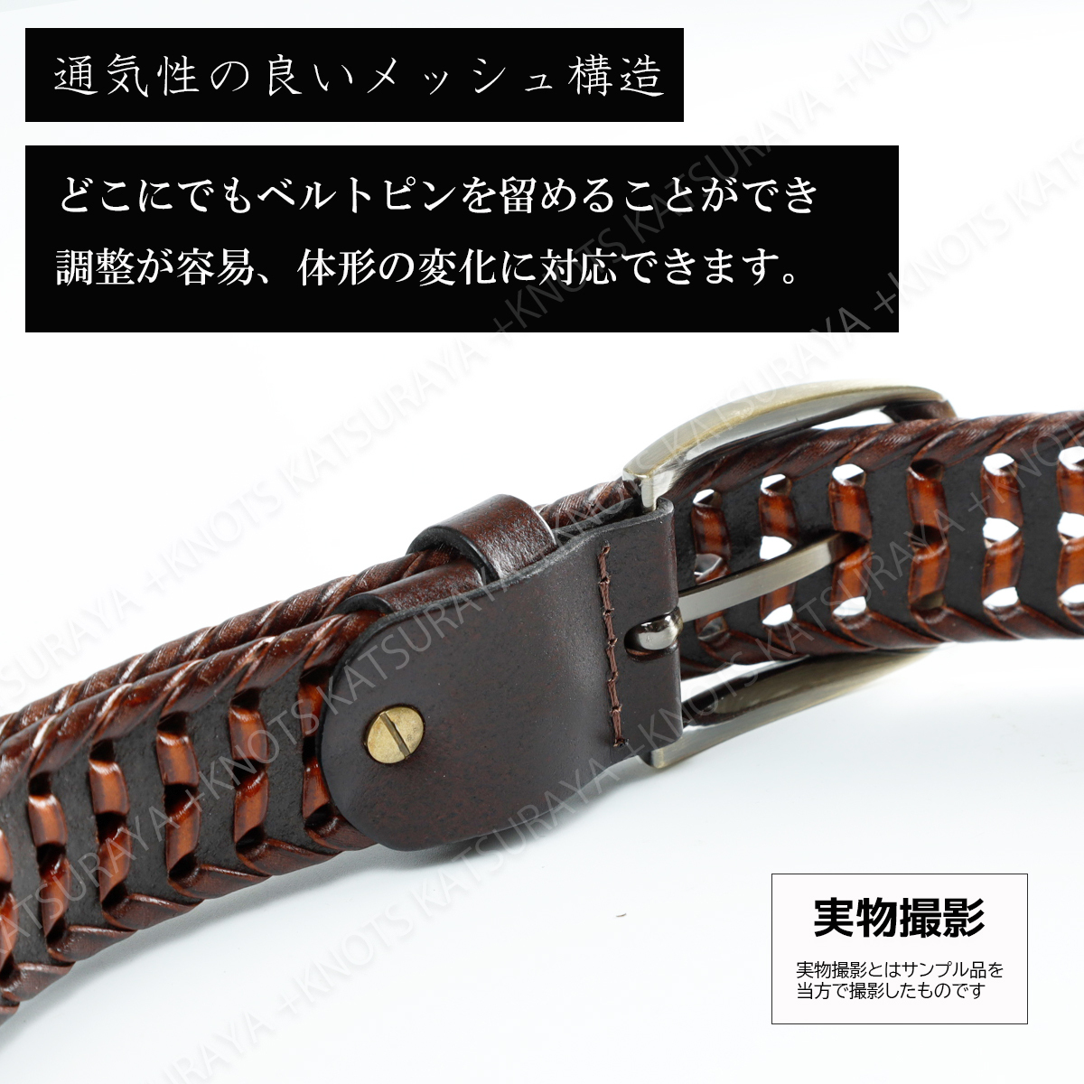 本革 メンズ メッシュ 編み込み ベルト ビジネス ゴルフ