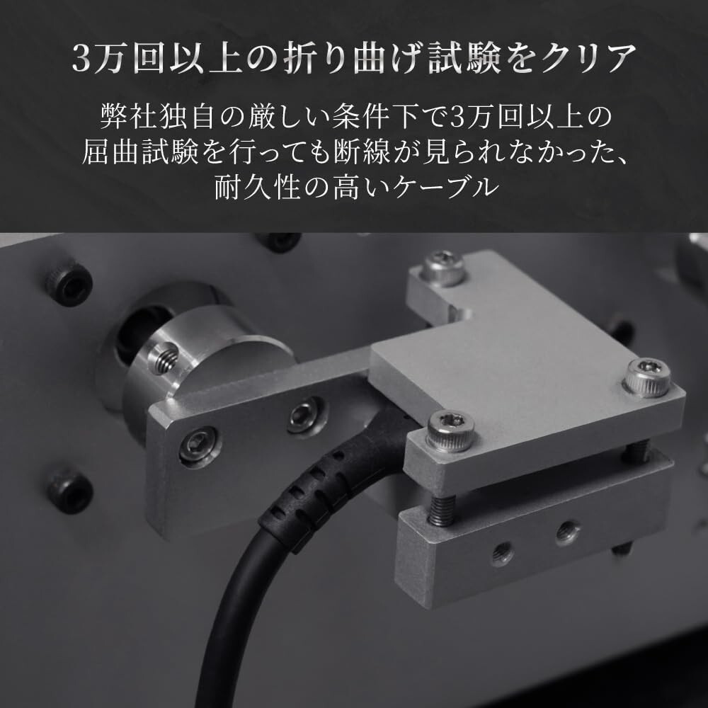 弊社独自の厳しい条件下で3万回以上の屈曲試験を行っても断線が見られなかった、耐久性の高いケーブルです。
