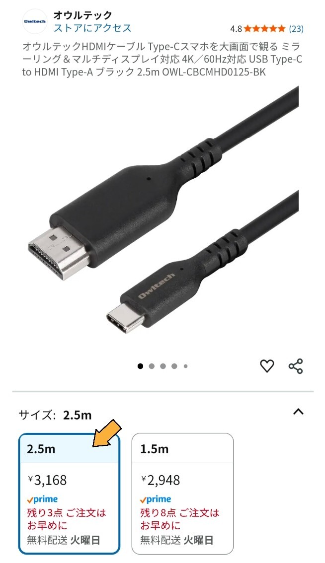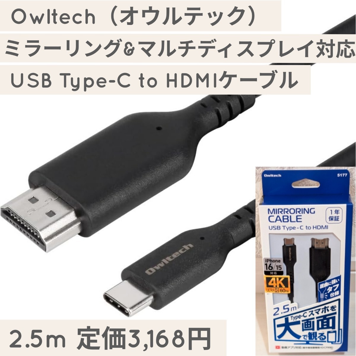 Owltech(オウルテック)USB Type-C to HDMIケーブル 2.5 mです☆