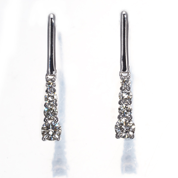 艶やかなバーから4石のダイヤモンドがグラデーションに並ぶエレガントなジュエリー。仄かな色味がございますが、内包物も少ない上質な透明感を持っておりますので瑞々しく眩い煌めきを魅せてくれますよ。 |