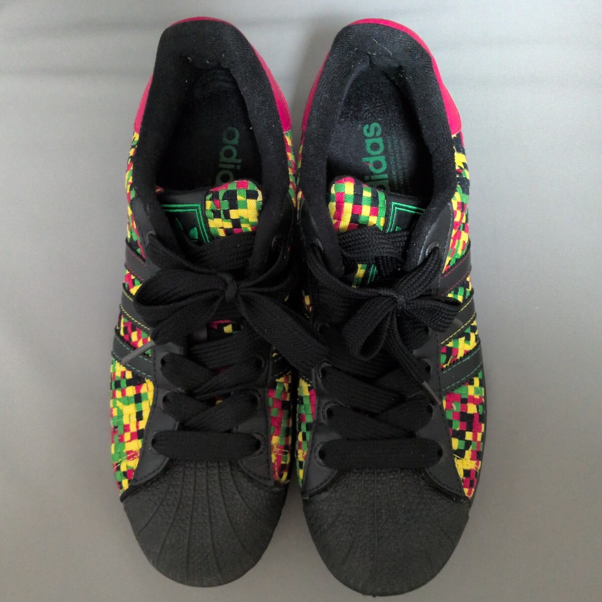 【割引】adidas アディダス★SUPERSTARⅡ スーパースターⅡ★ブラック/ラスタカラー編み込み★28センチ