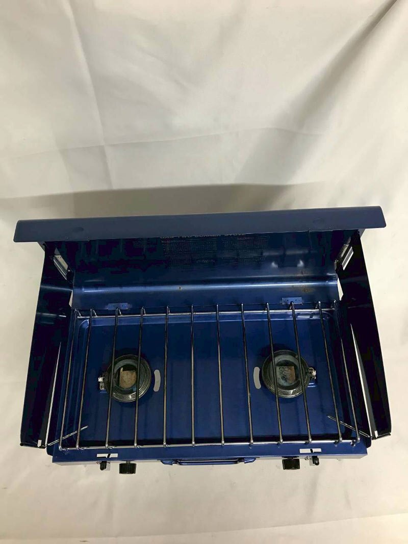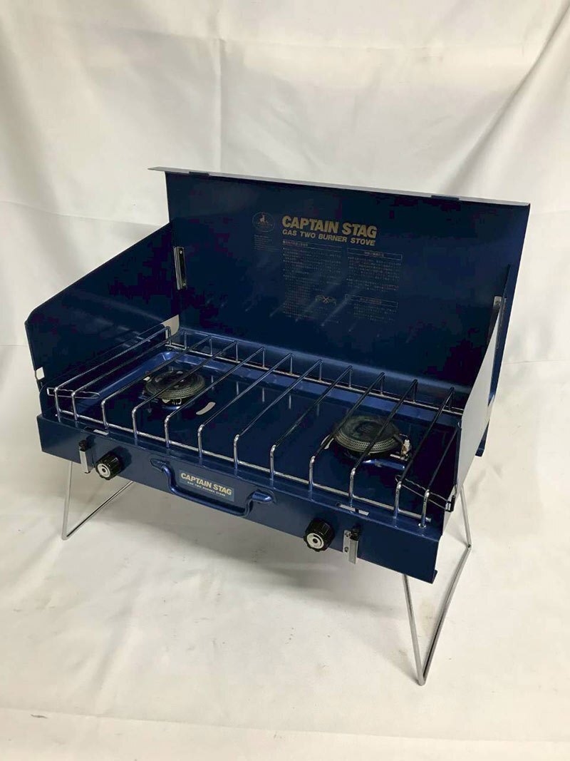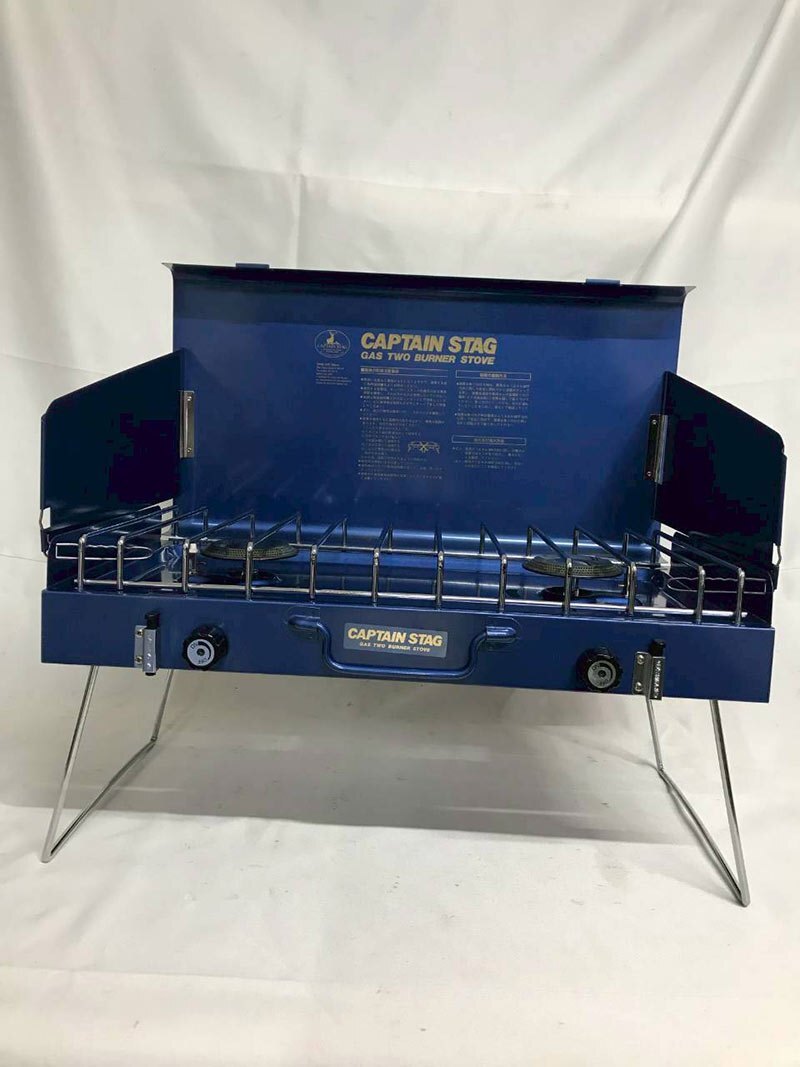 【北見市発】キャプテンスタッグ CAPTAIN STAG ステイジャー コンパクトガスツーバーナーコンロ M-8249 1994年製 青 キャンプ アウトドア