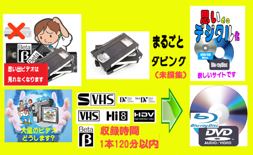 思い出ビデオ BD-1N ☆ビデオ素材10本を まるごと(未編集)ダビングでDVDデイスク10本に保存  BD8-004