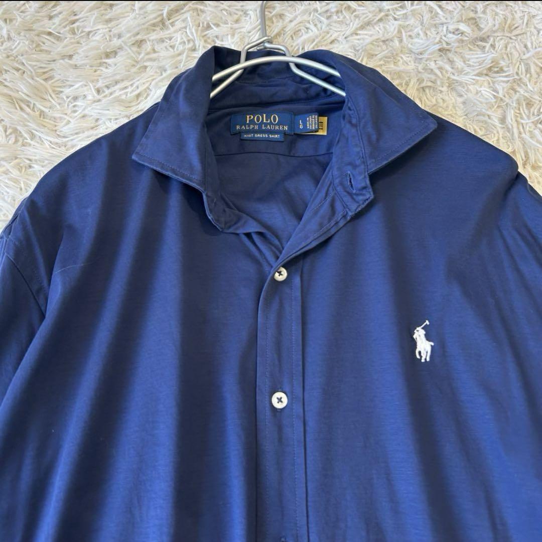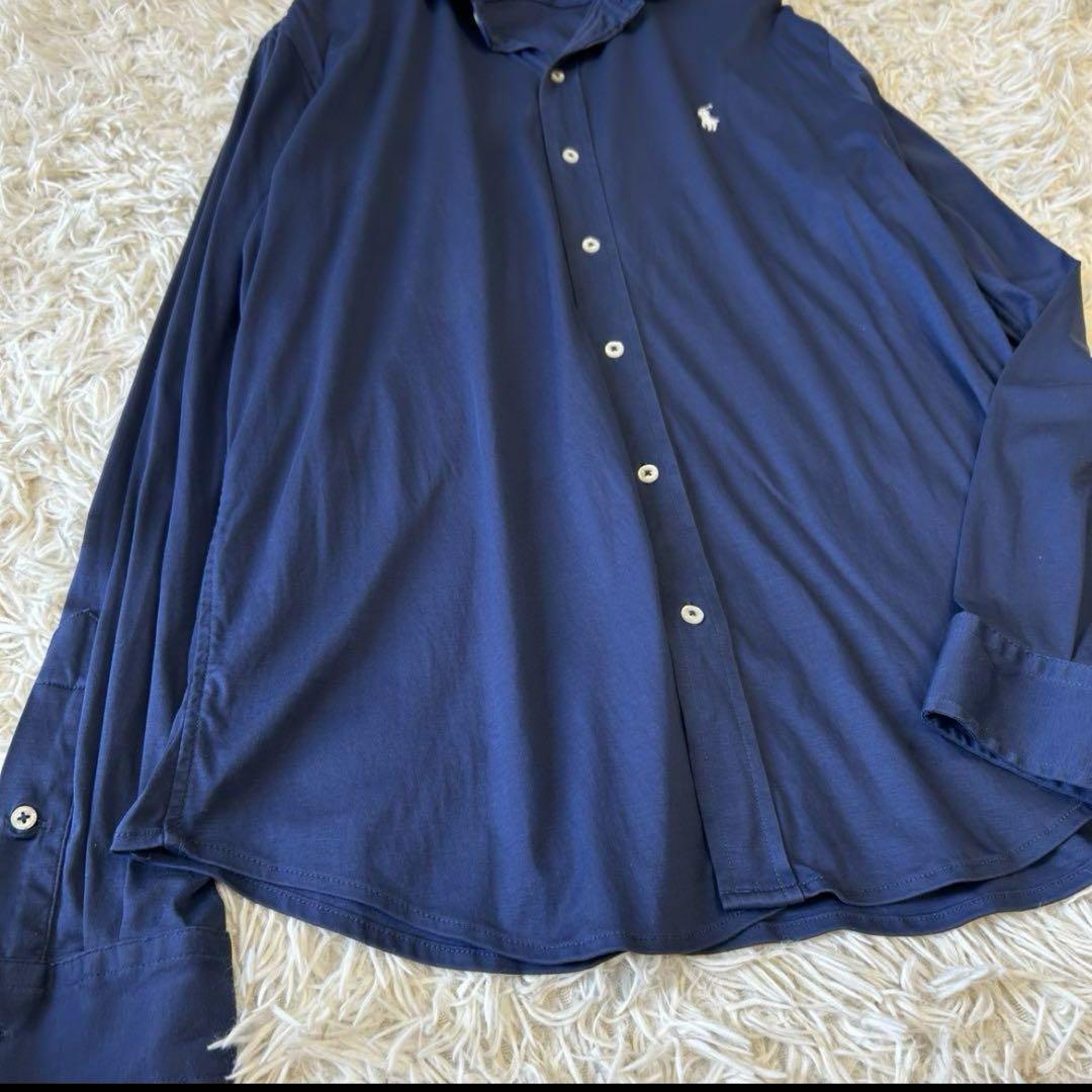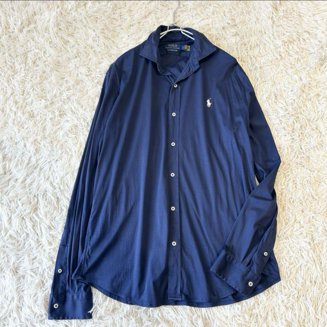 現行 ポロラルフローレン POLO RALPH LAUREN 長袖シャツ ネイビー コットン 綿 ニットドレスシャツ knit dress shirt ポニー刺繍 とろみ