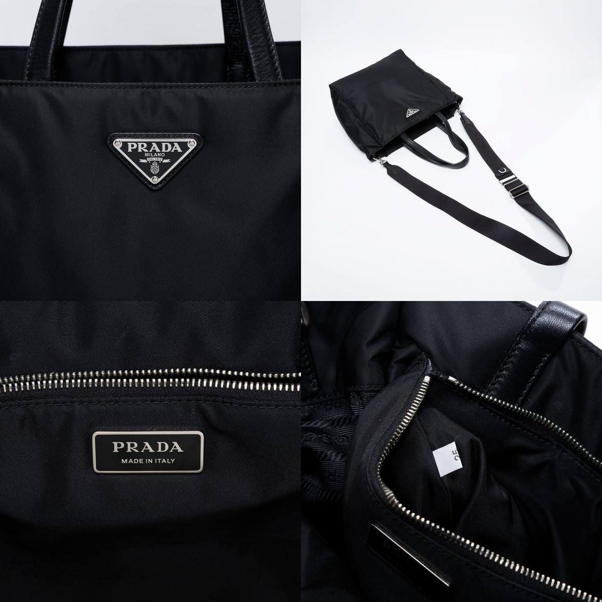 極美品 PRADA ナイロン ナッパレザー 2way テスート ミニ トート ハンドバッグ ブラック