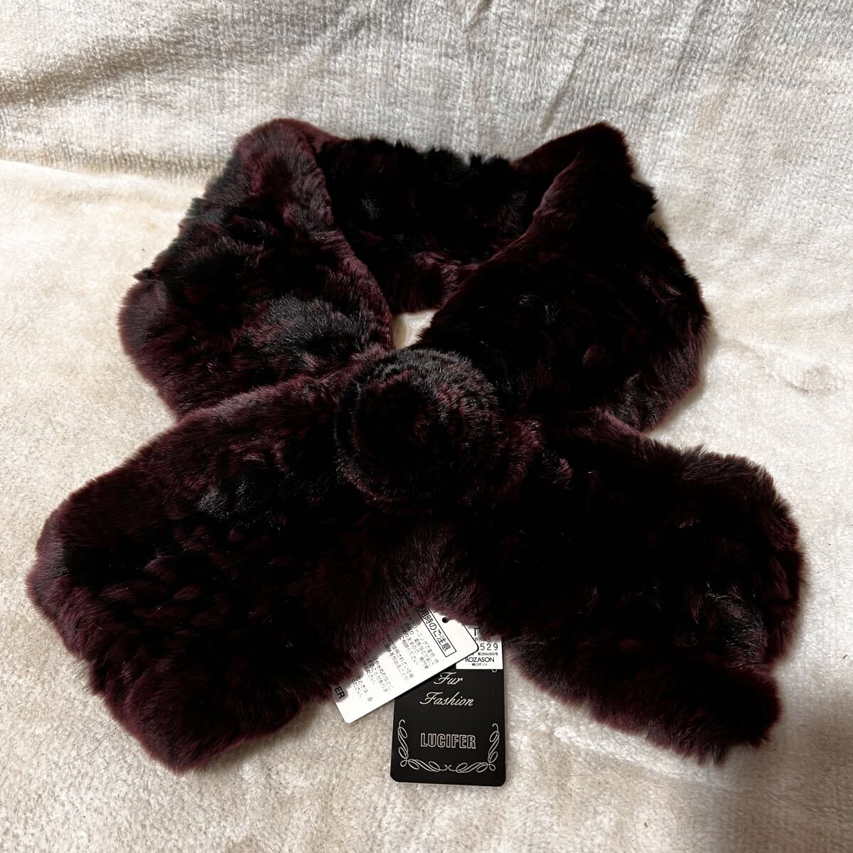 商品説明:C2837 LUCIFER ルシファー レッキスラビット ファーティペット 未使用タグ付き ボルドー系 和装小物 花モチーフ飾り付き ループタイプ 状態画像にて 現状にて