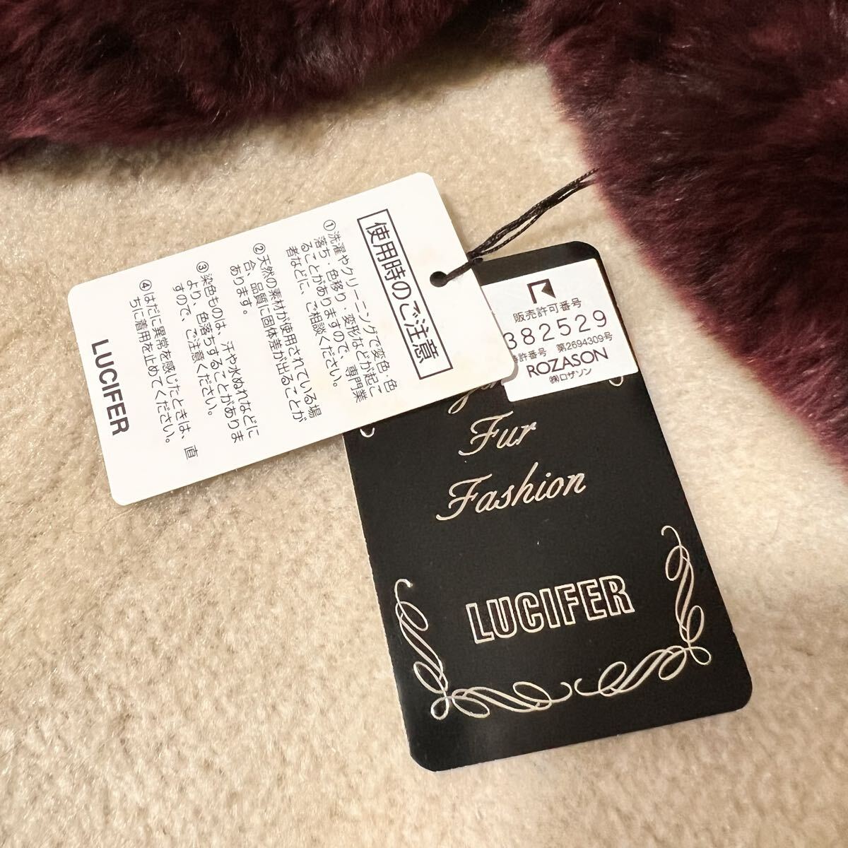 商品名:C2837 LUCIFER ルシファー レッキスラビット ファーティペット 未使用タグ付き ボルドー系 和装小物 花モチーフ飾り付き
