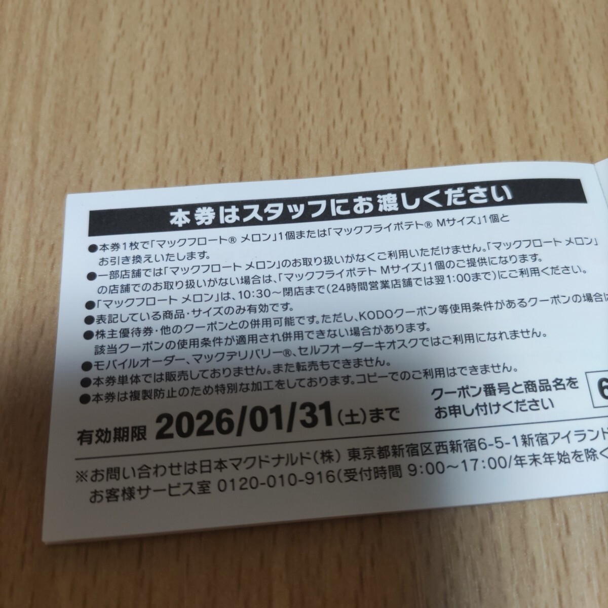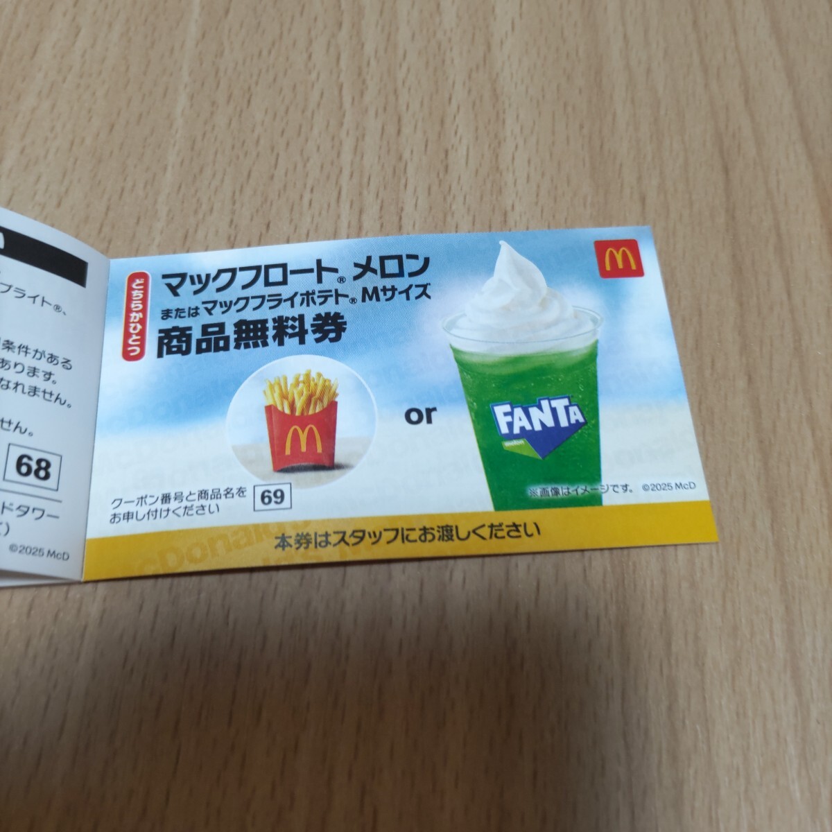 マックフロートメロン または マックフライポテト M サイズ 1枚