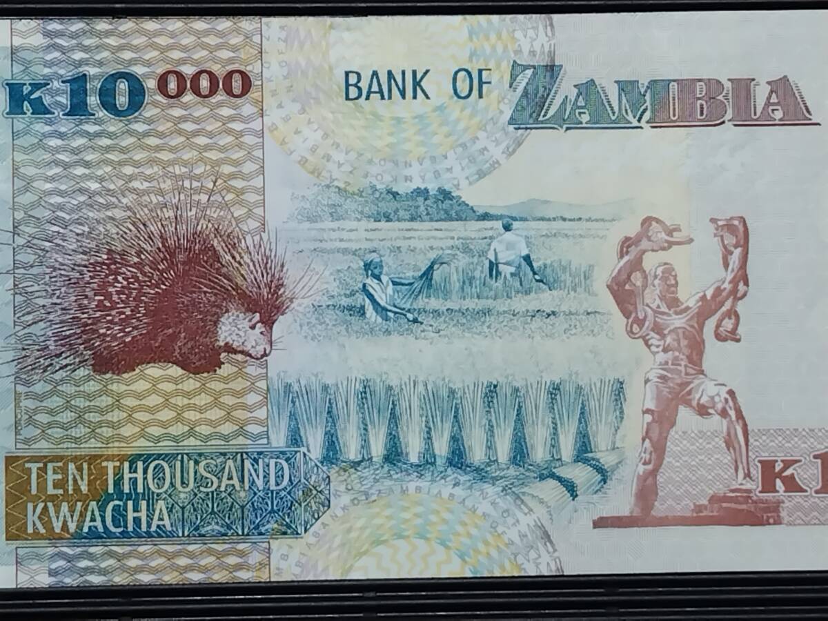 ザンビア 1万(10000) Kwacha札 ドイツ印刷版 コレクション向きのピン札 2008年 未使用~甘い未使用 ヤマアラシ p-46e #GG/03 7399610