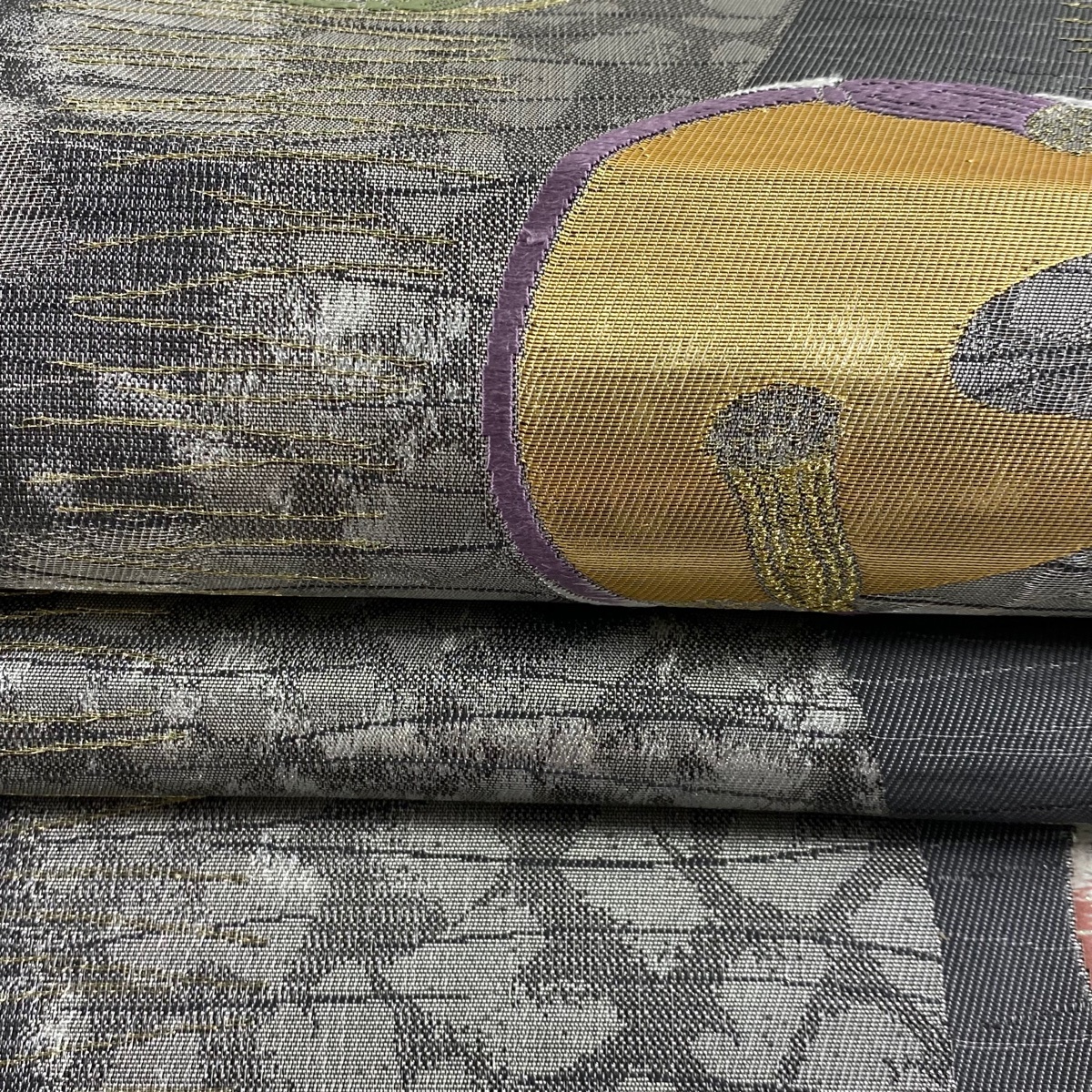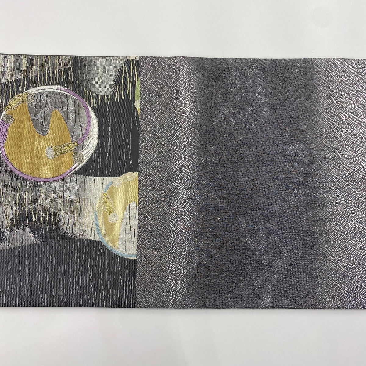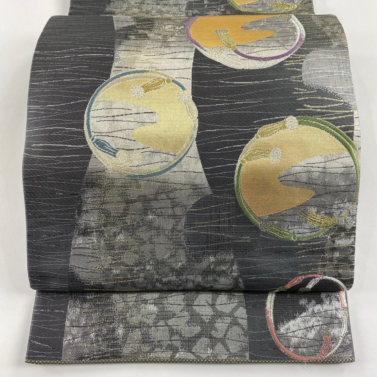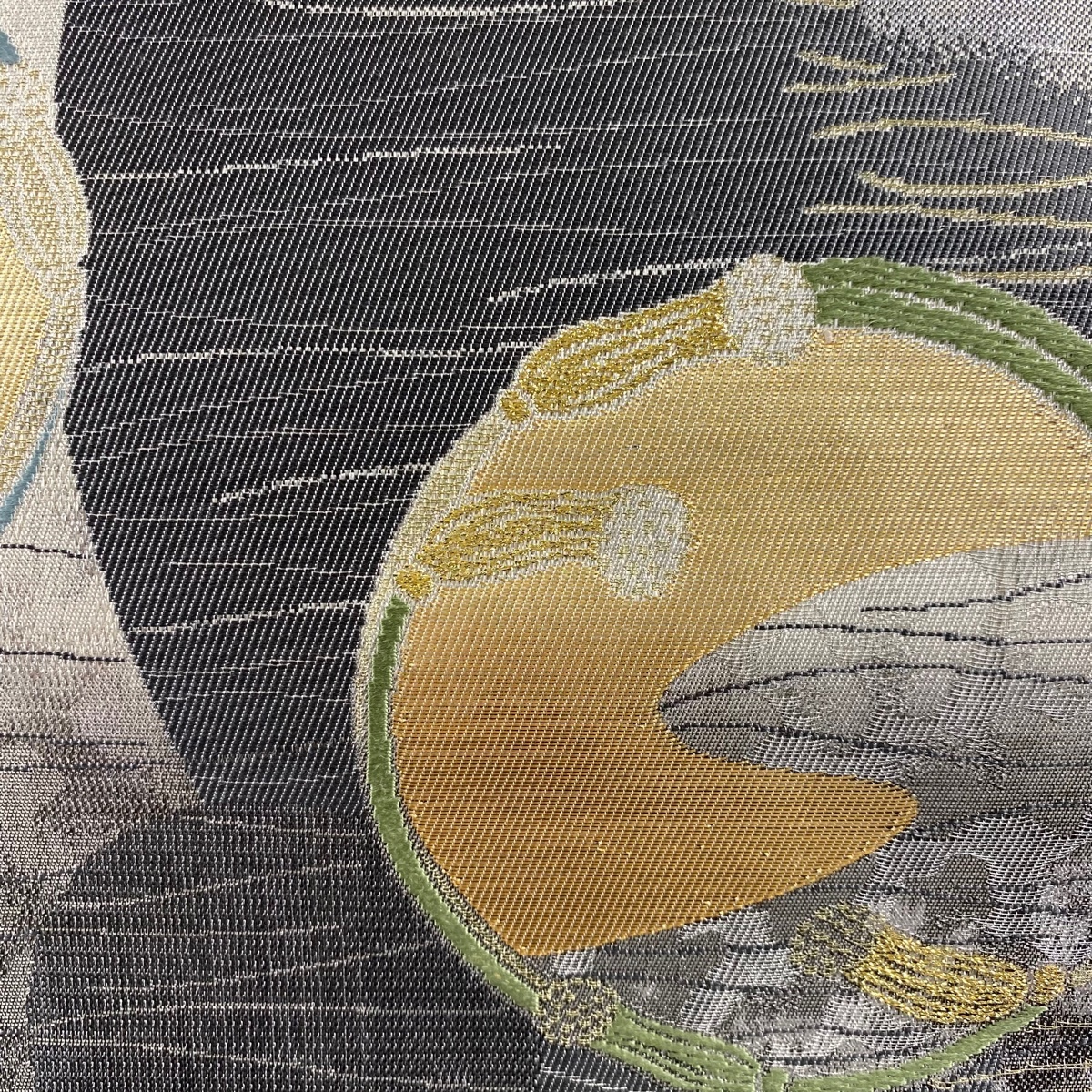 | 袋帯 美品 秀品 証紙 四季彩々 流水 組紐 箔 金糸 灰色 六通 正絹 【中古】 |