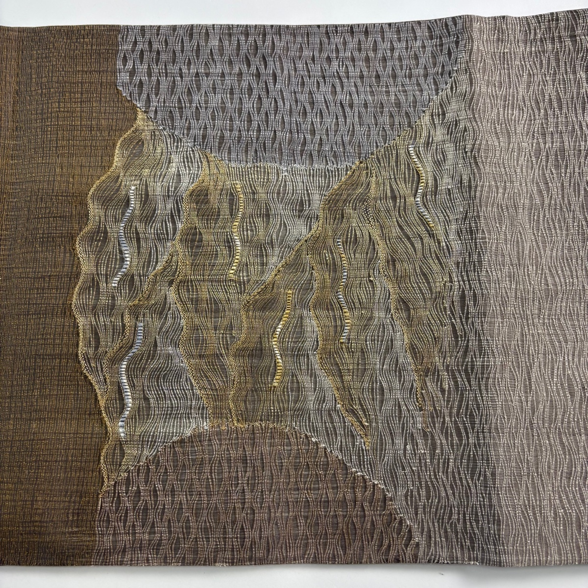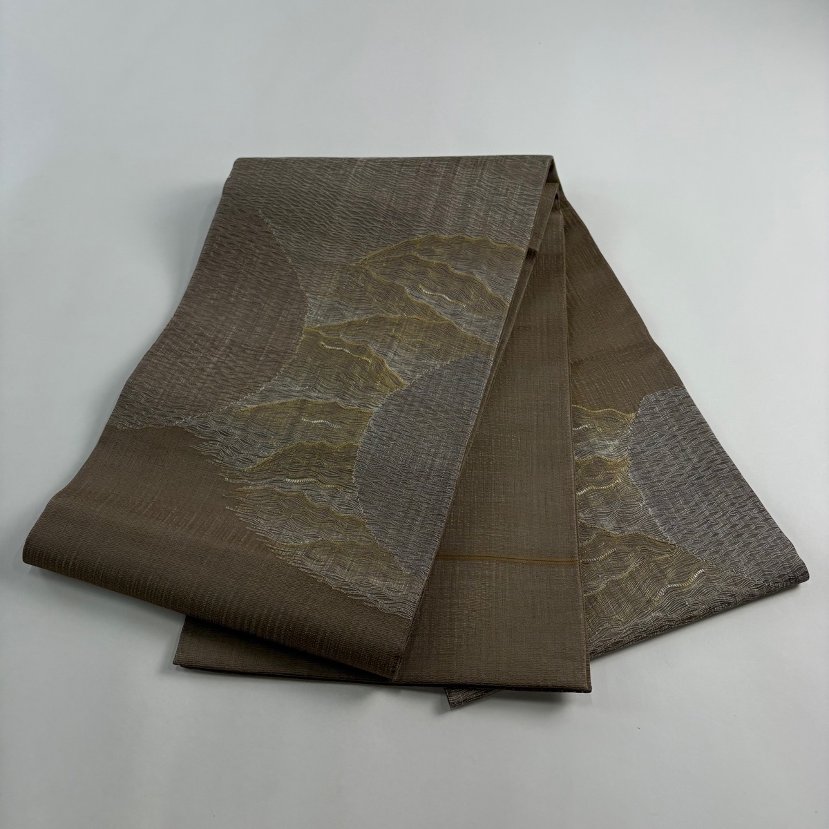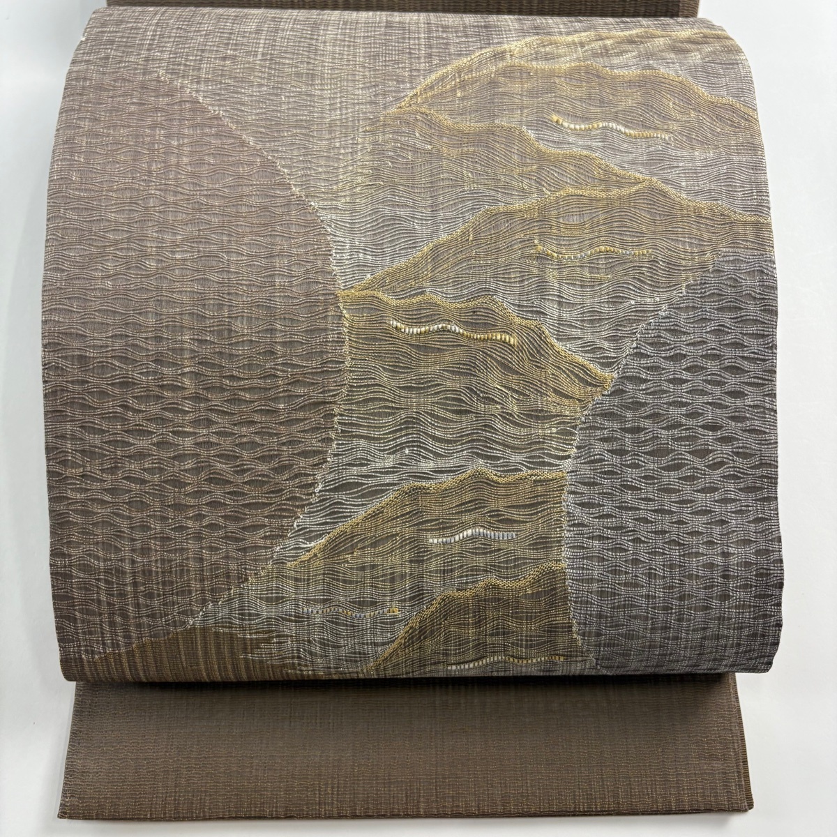 | 袋帯 秀品 幾何学模様 金糸 茶色 お太鼓柄 正絹 【中古】 |