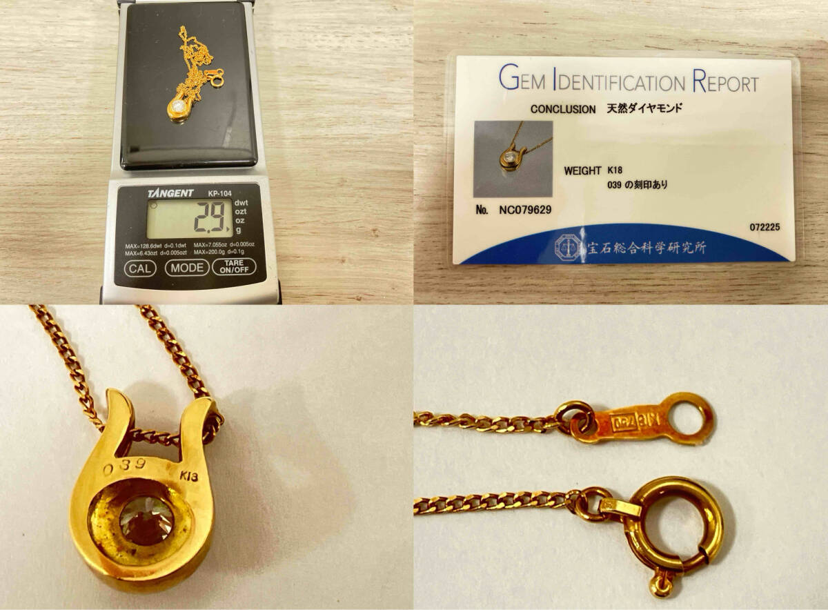 カラット数:0.39ct チェーン全長:約 40cm 高さ:約 1.2cm 幅:約 0.8cm 総重量:約 2.9g サイズ表記(~cm位)は目安です。ブランドやデザインによって多少前後する場合がございます。予めご了承の上ご注文ください。 ![]() | ||||||