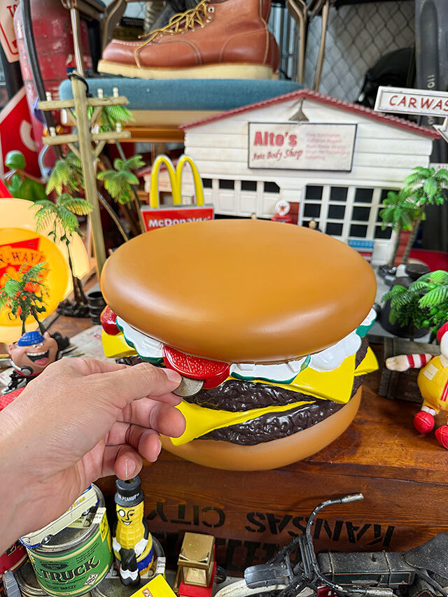 直径26cmのメガサイズバーガーの貯金箱っす!