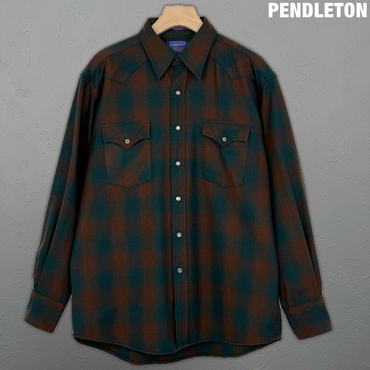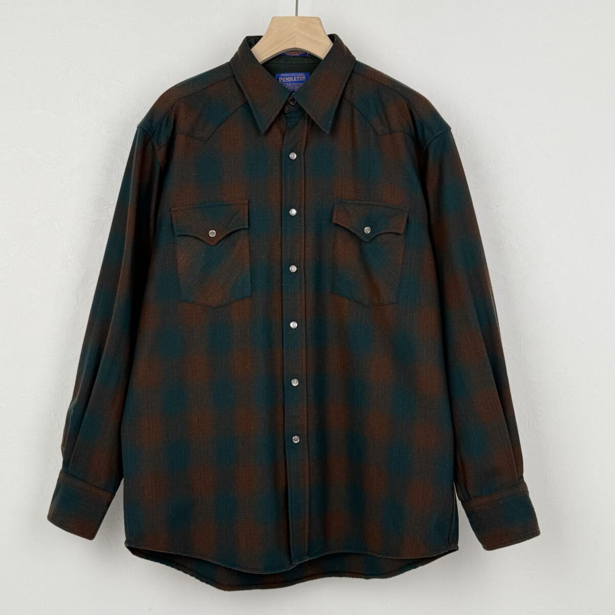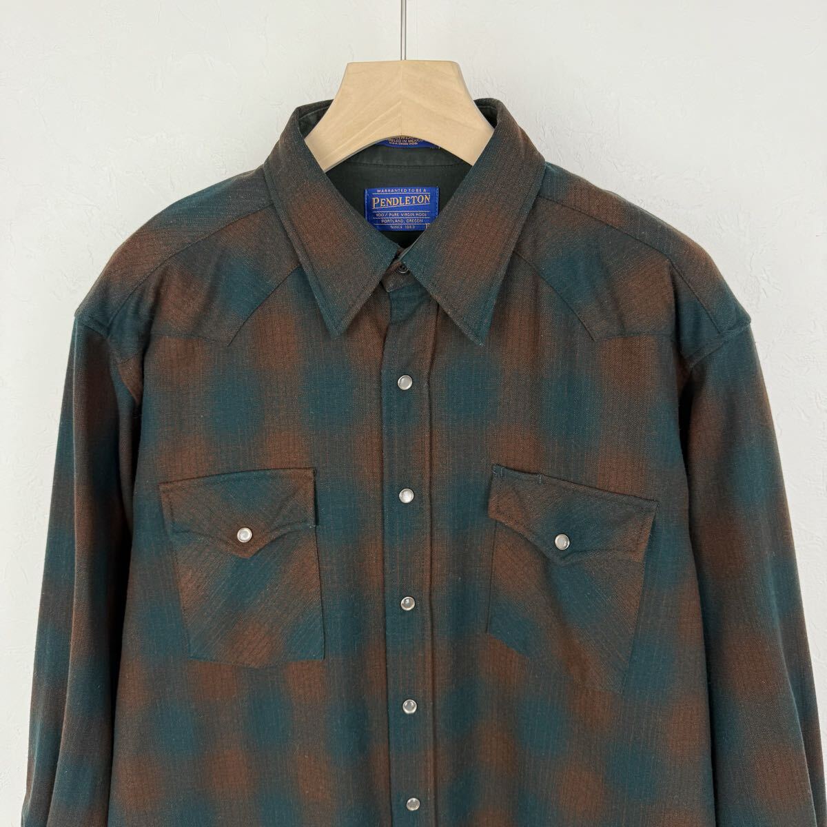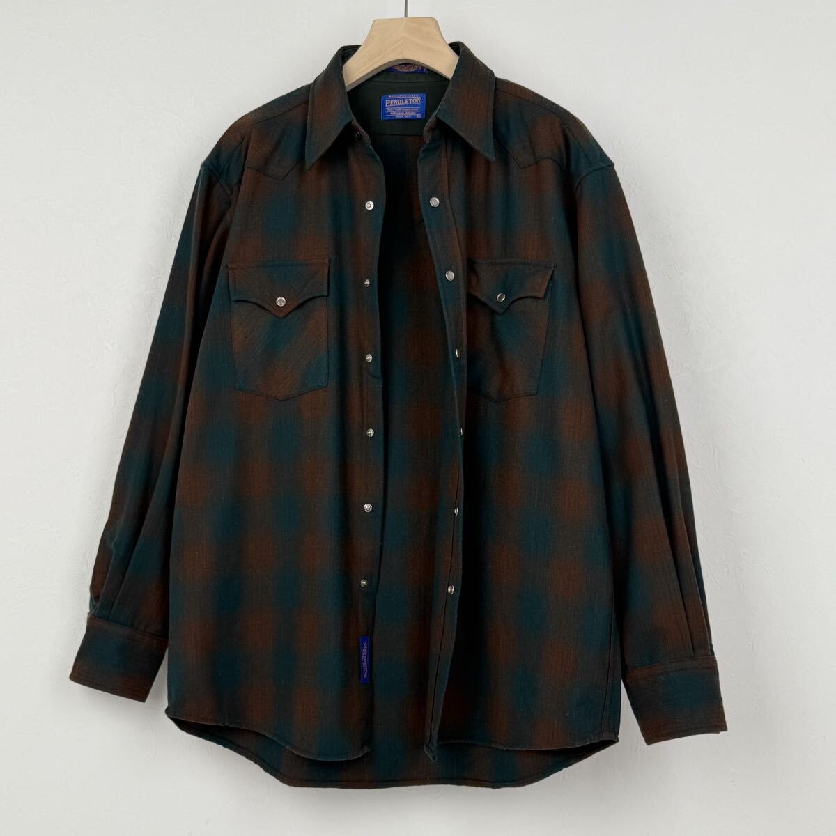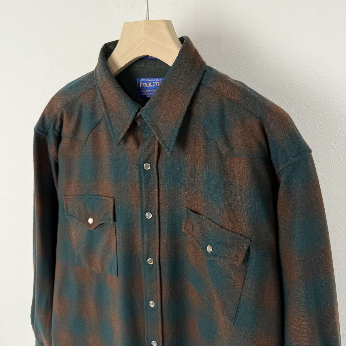 PENDLETONの90s ビンテージ オンブレ チェック ウール ウエスタンシャツです。