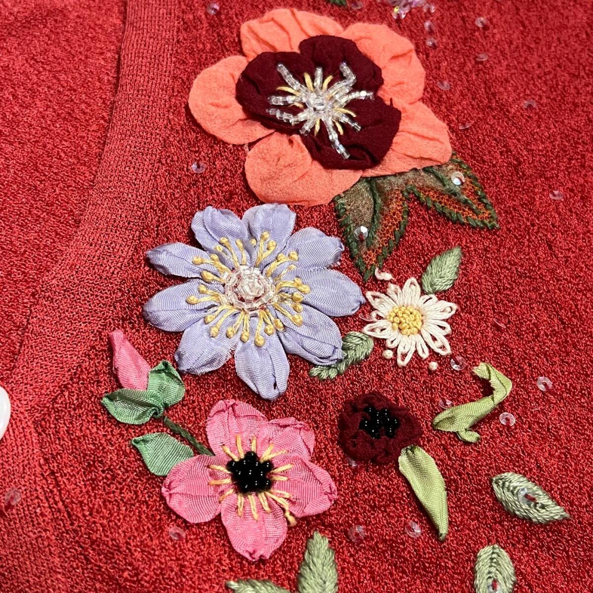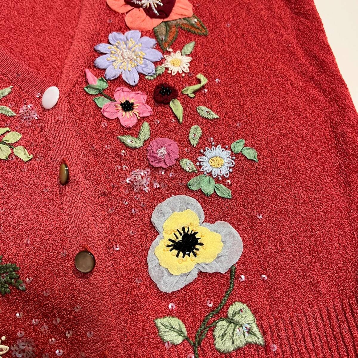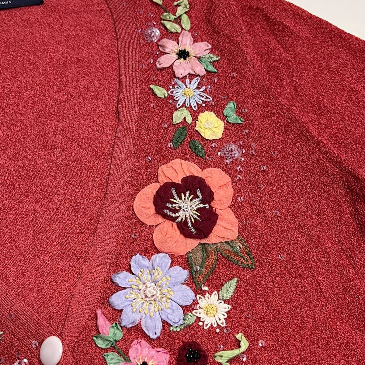 繊細な花柄の立体刺繍が施されたシアーカーディガンです。透け感のある軽やかな素材で、春夏シーズンの羽織りにぴったり。薄手で通気性が良く、冷房対策や日除けにも活躍します。