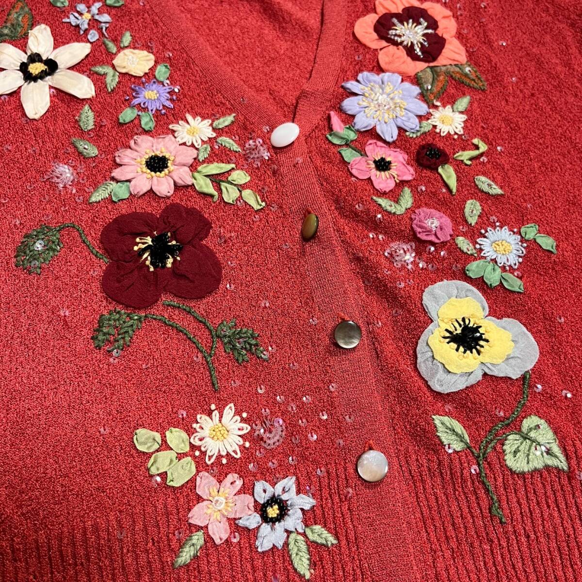 花柄 立体 刺繍 シアーカーディガン Vネックカーディガン 薄手 サマーカーディガン 羽織り フロントボタン