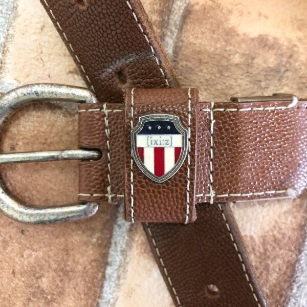 ixi:z イクシーズ メンズ 星条旗カラー エンブレムスタッズ ベルト ブラウン