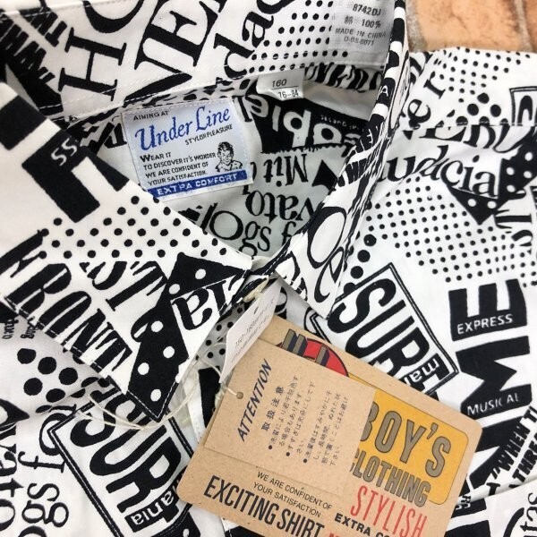 新品!Under Line キッズ 英字プリント 総柄 長袖シャツ 160 黒白