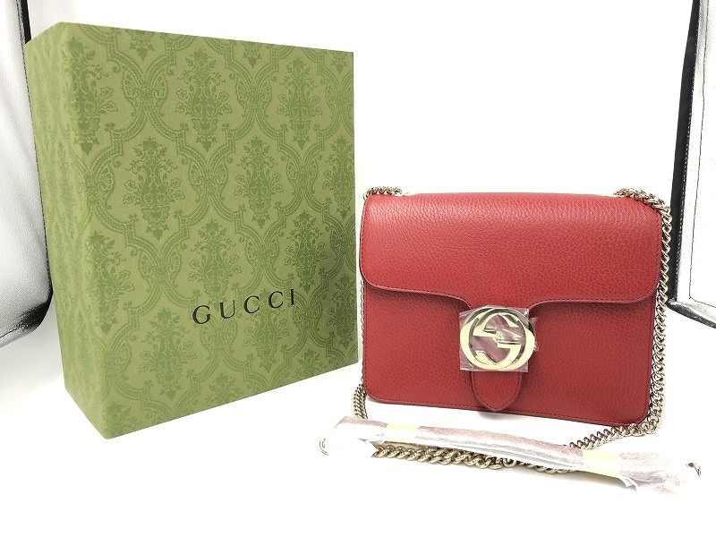【未使用】 グッチ GUCCI インターロッキングG ショルダーバッグ レッド 510304