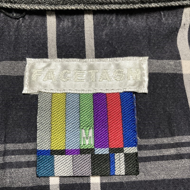 FACETASM★デニム切替チェック リネン混 長袖ウエスタンシャツ 再構築系 クレリック風 黒 M ファセッタズム