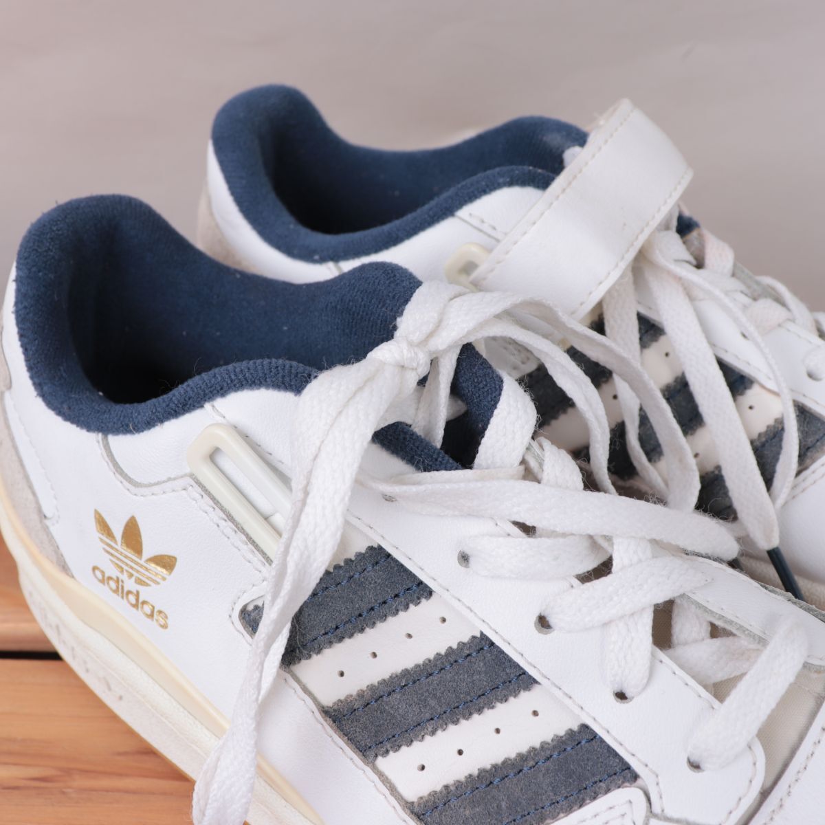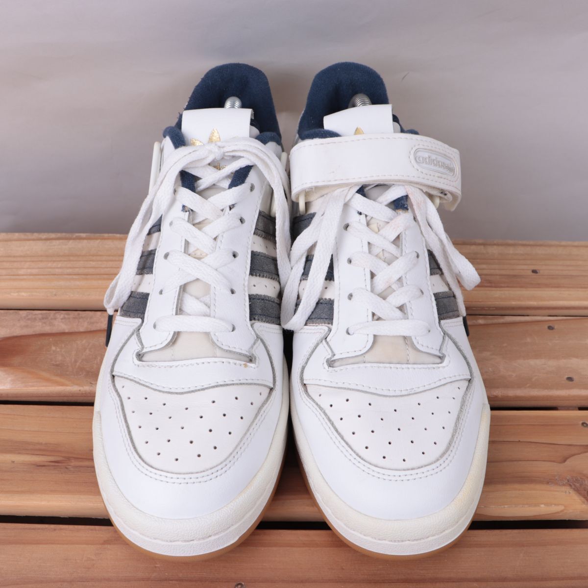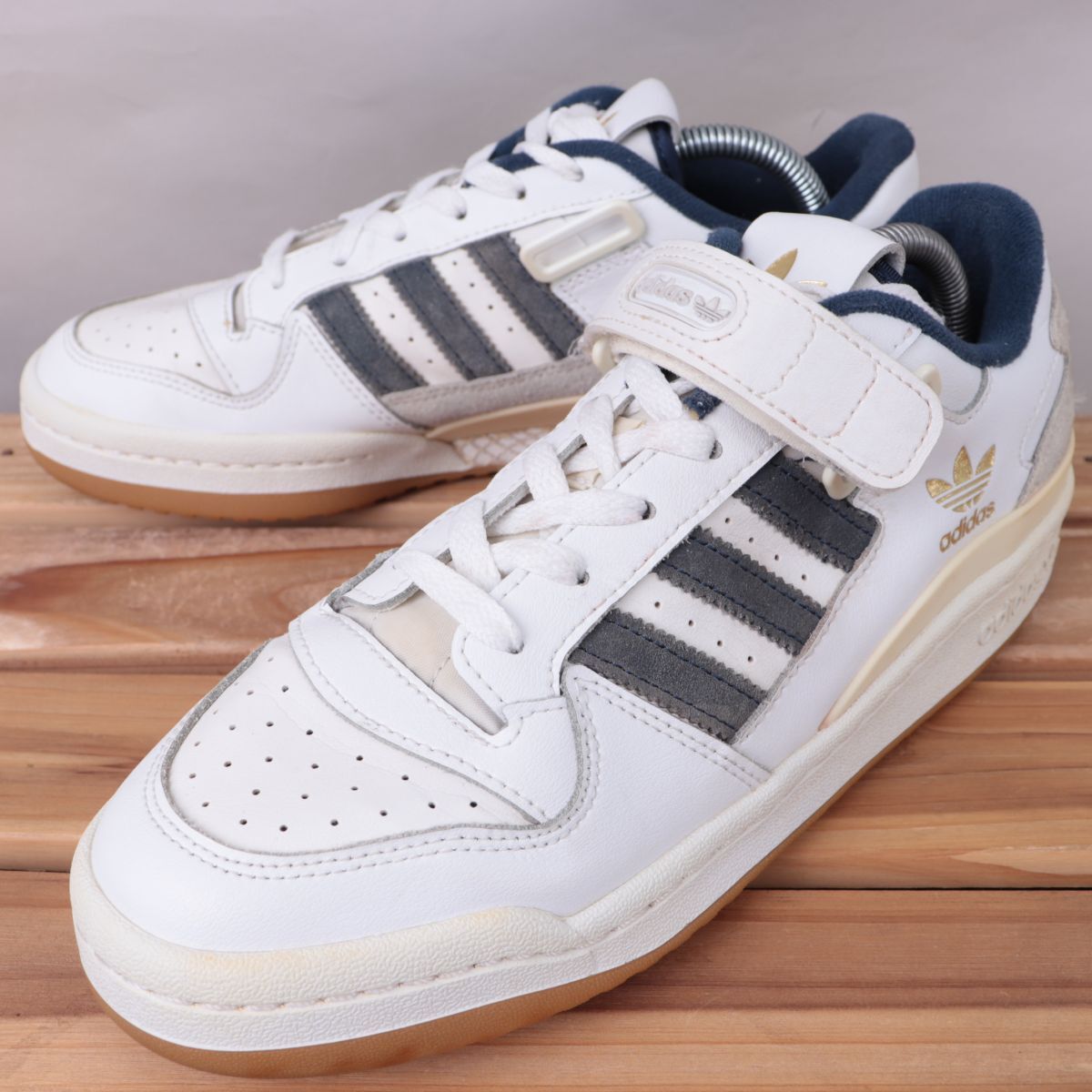 z1468 アディダス フォーラム ロー US8 26.0cm/白 ホワイト 紺 ネイビー 金 adidas Forum Low メンズ スニーカー 中古