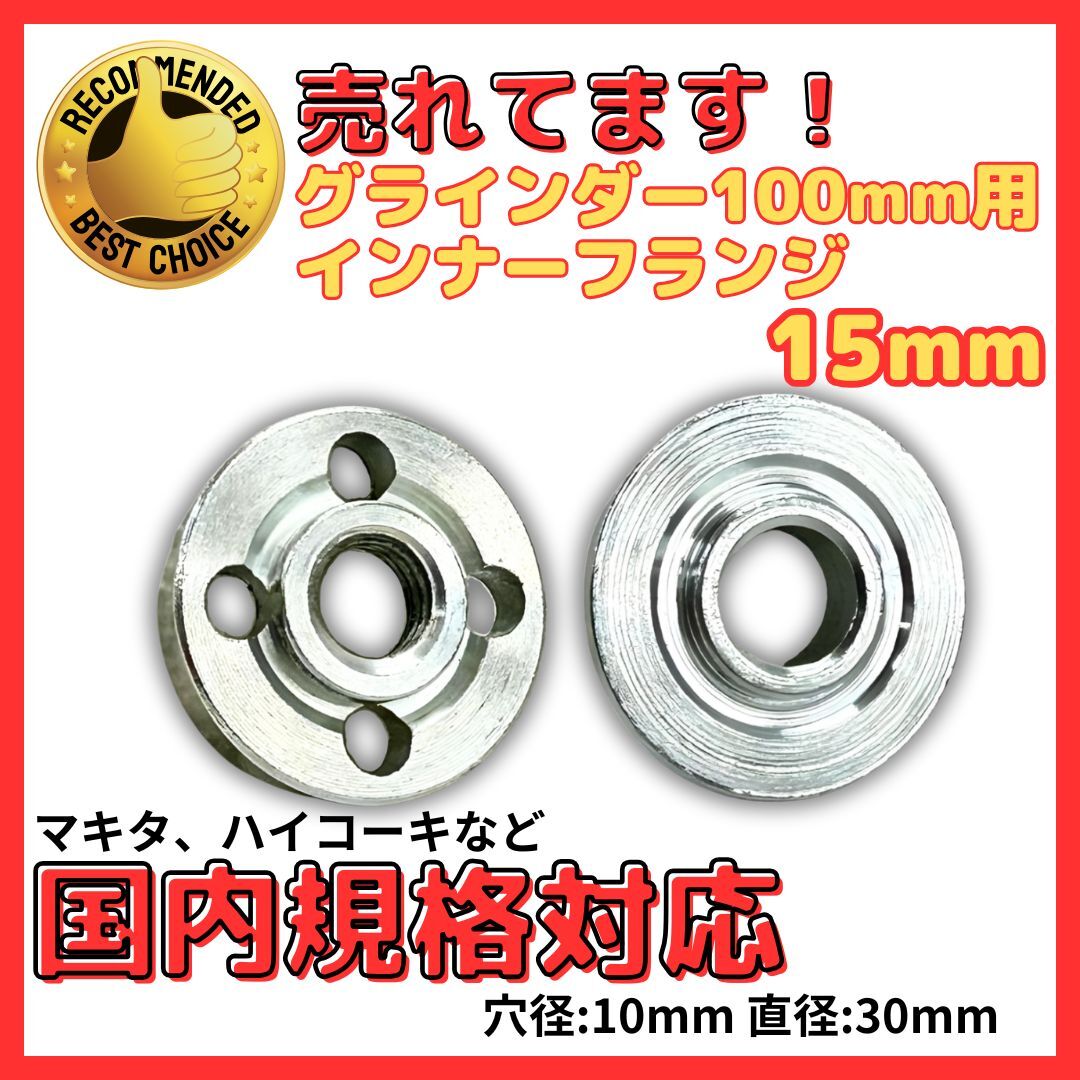 A マキタ 互換 インナーフランジ 15mm ロックナット セット グラインダー 100mm用 穴径10mm ハイコーキ リョービ 対応 砥石用 (GRF1501)