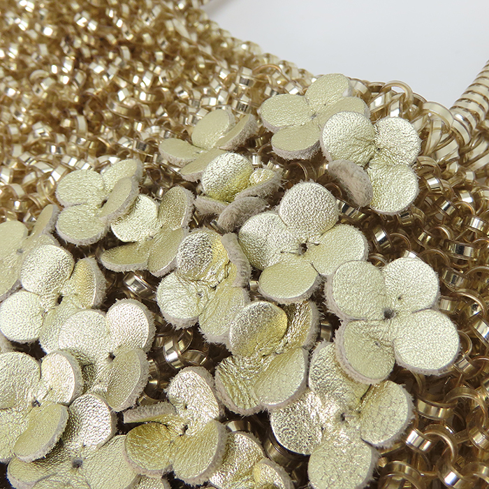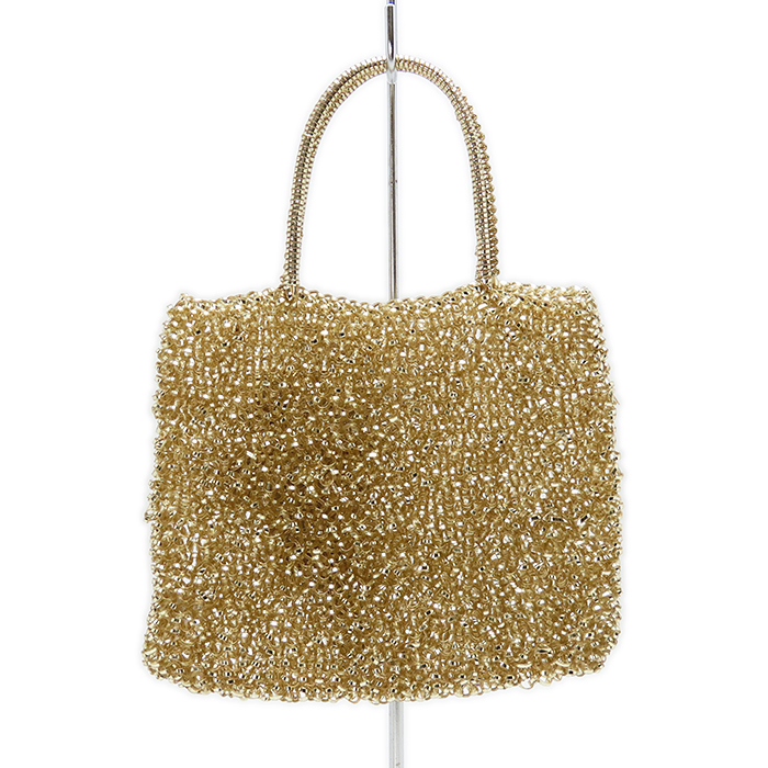 | 商品説明 | 特殊加工されたPVCワイヤーがキラキラと光るおしゃれなバッグです。ドレスアップにもカジュアルにもお使いいただける人気のアイテムです。 |