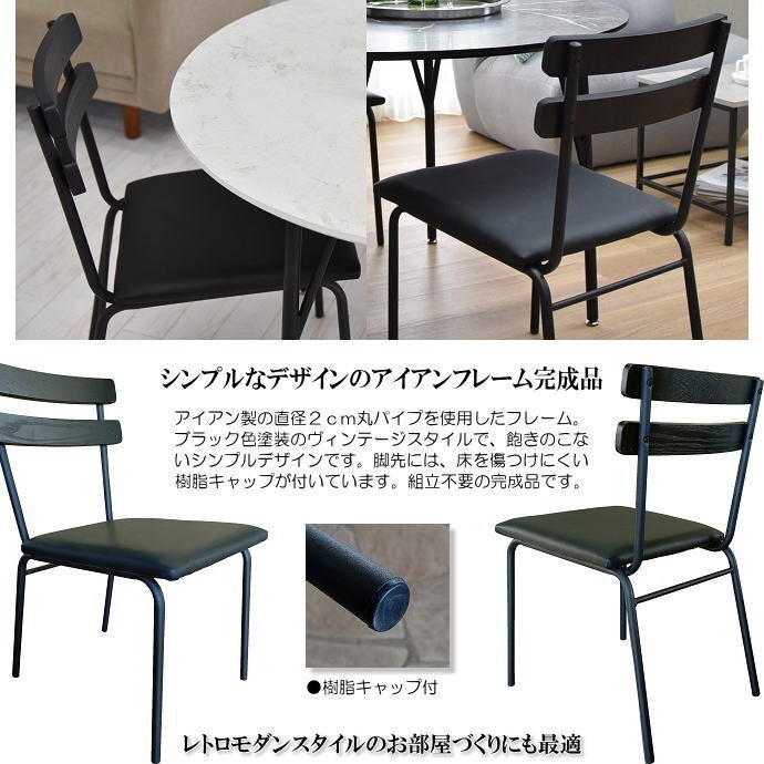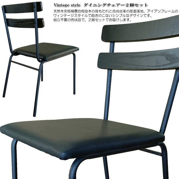 | 【商品名】 | ヴィンテージ調アイアンフレームのナチュラル感ある積層合板背もたれ合成皮革張座面 ダイニングチェアー2脚セット |