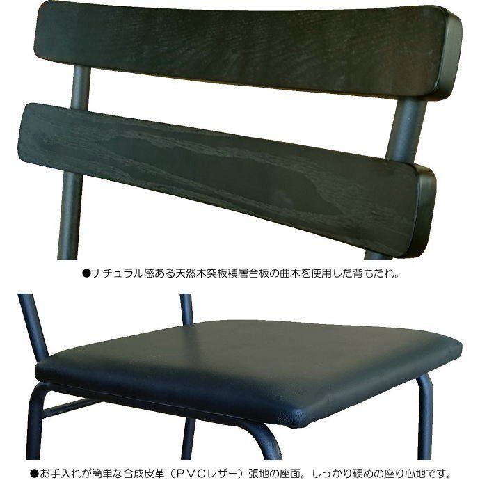 | 【材質】 | 背もたれ:天然木積層合板 座面張地:合成皮革(PVCレザー) フレーム:アイアン 中材:ウレタン・合板 |