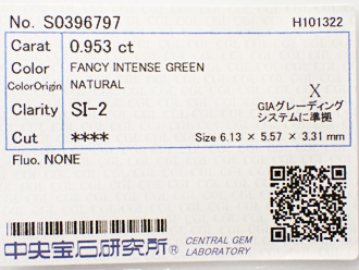 グリーンダイヤモンド ルース 0.953ct FANCY INTENSE GREEN SI2