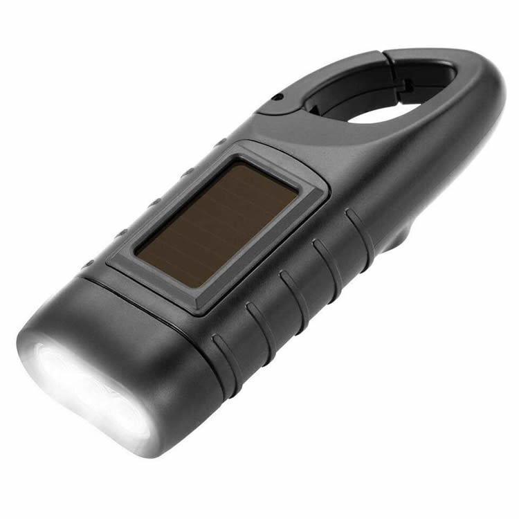 ◆緊急用LED懐中電灯 ソーラー懐中ライト 太陽光発電+手動発電 2WAY 手回し 防災 登山 停電 アウトドア ライト 3LED フック付き コンパクト ダイナモ式 防災用品 【ブラック】HSFLED86