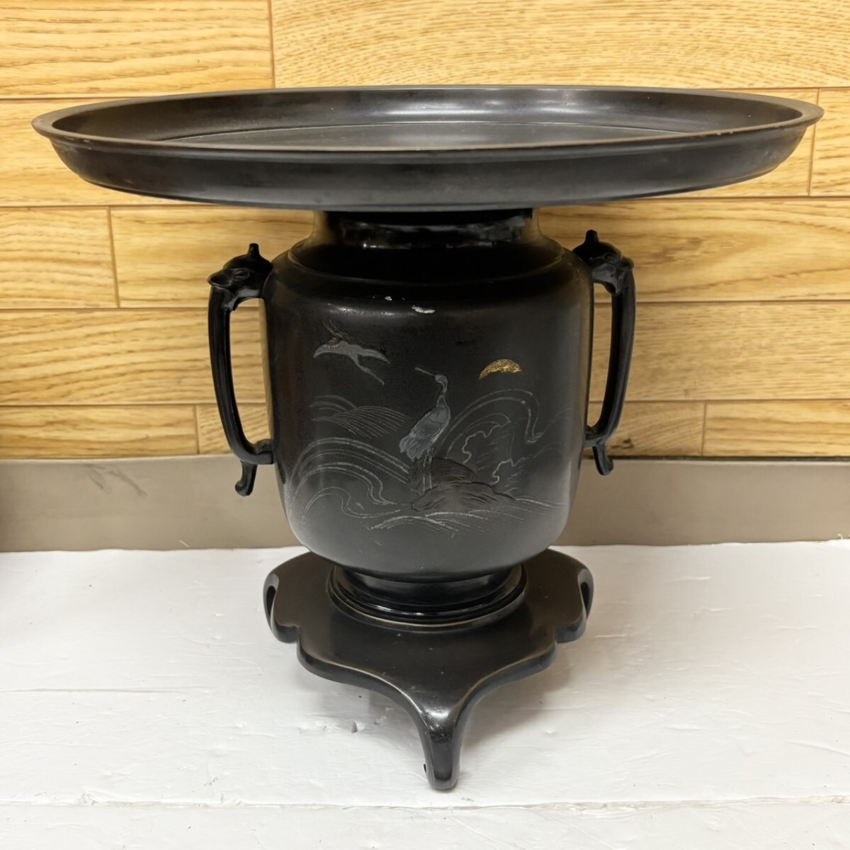 | 薄端 花器 花生 生け花 華道具 三足 鶴! ! | ||||