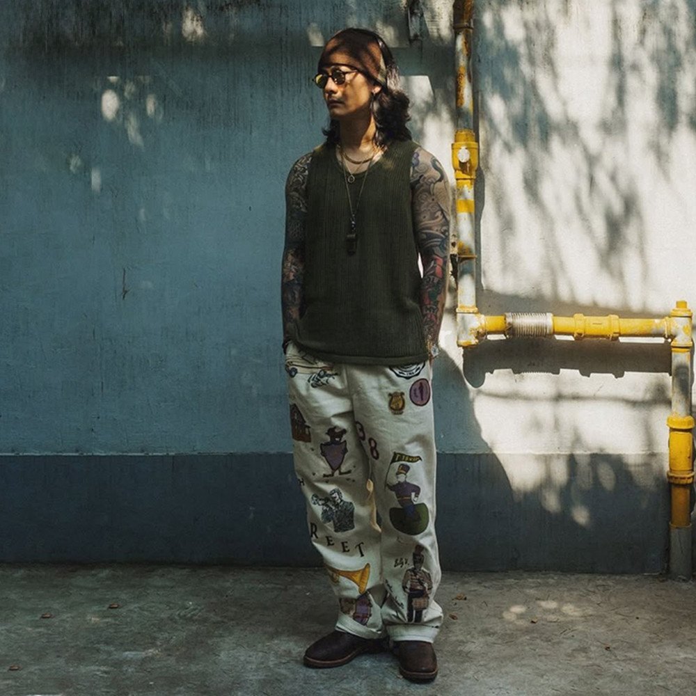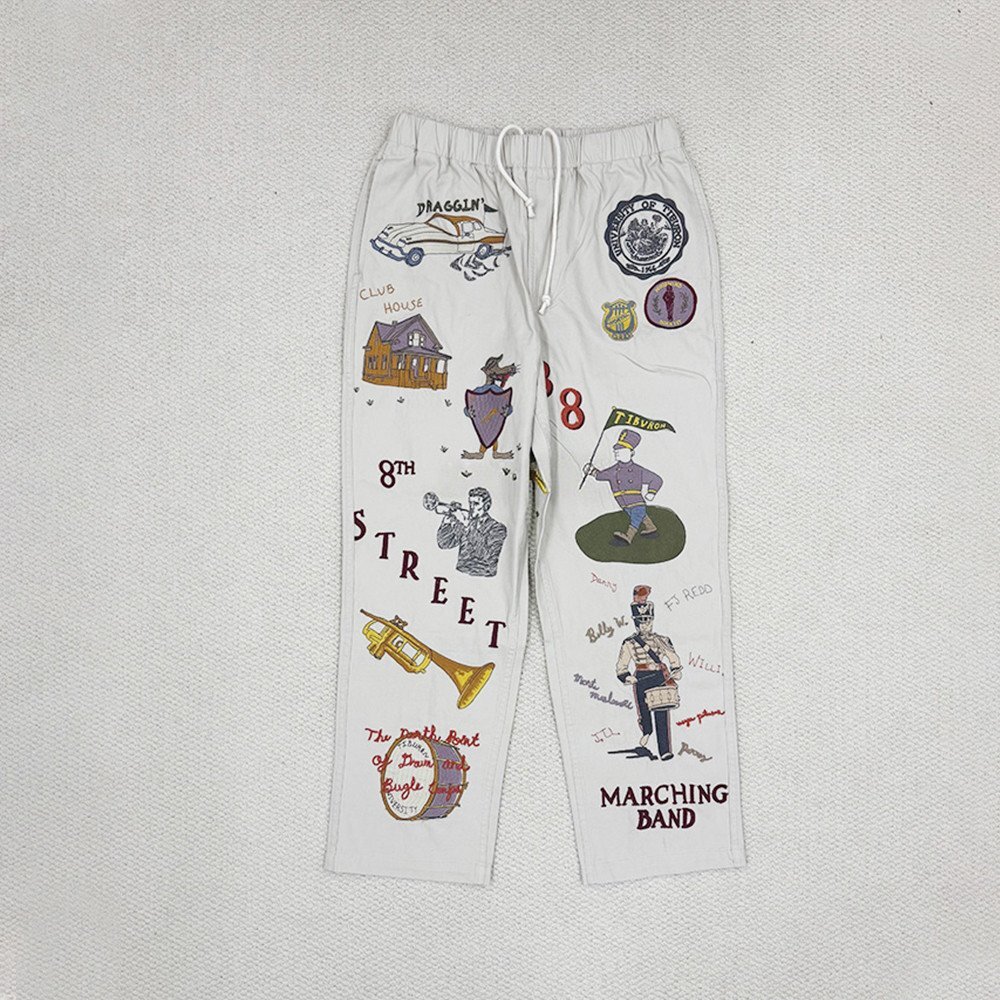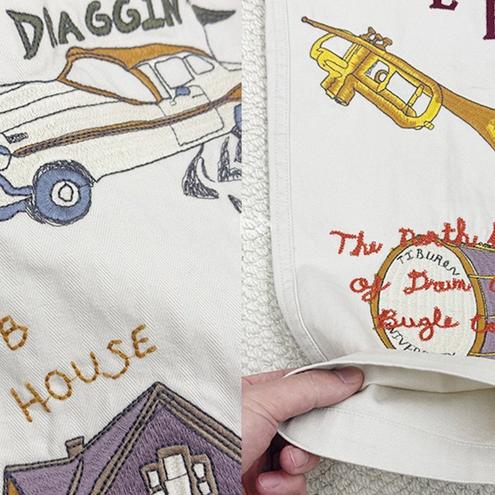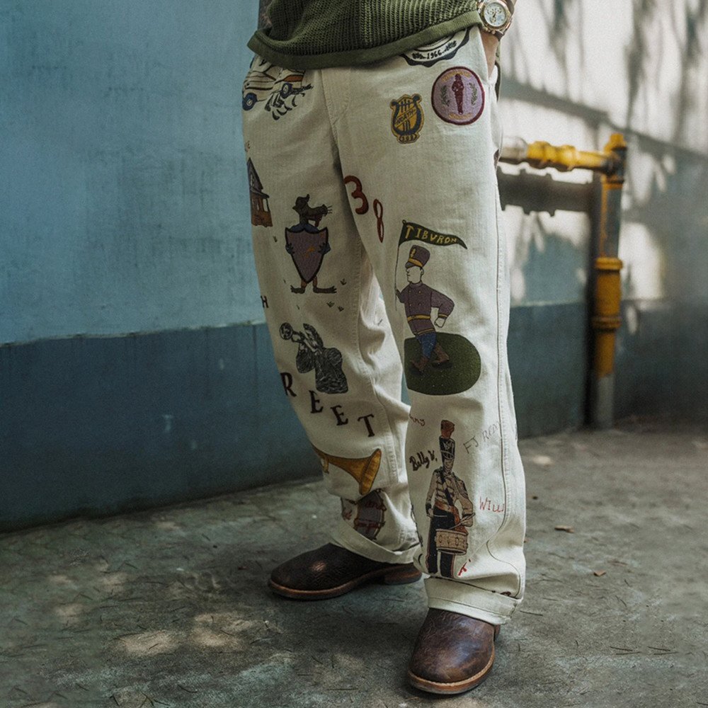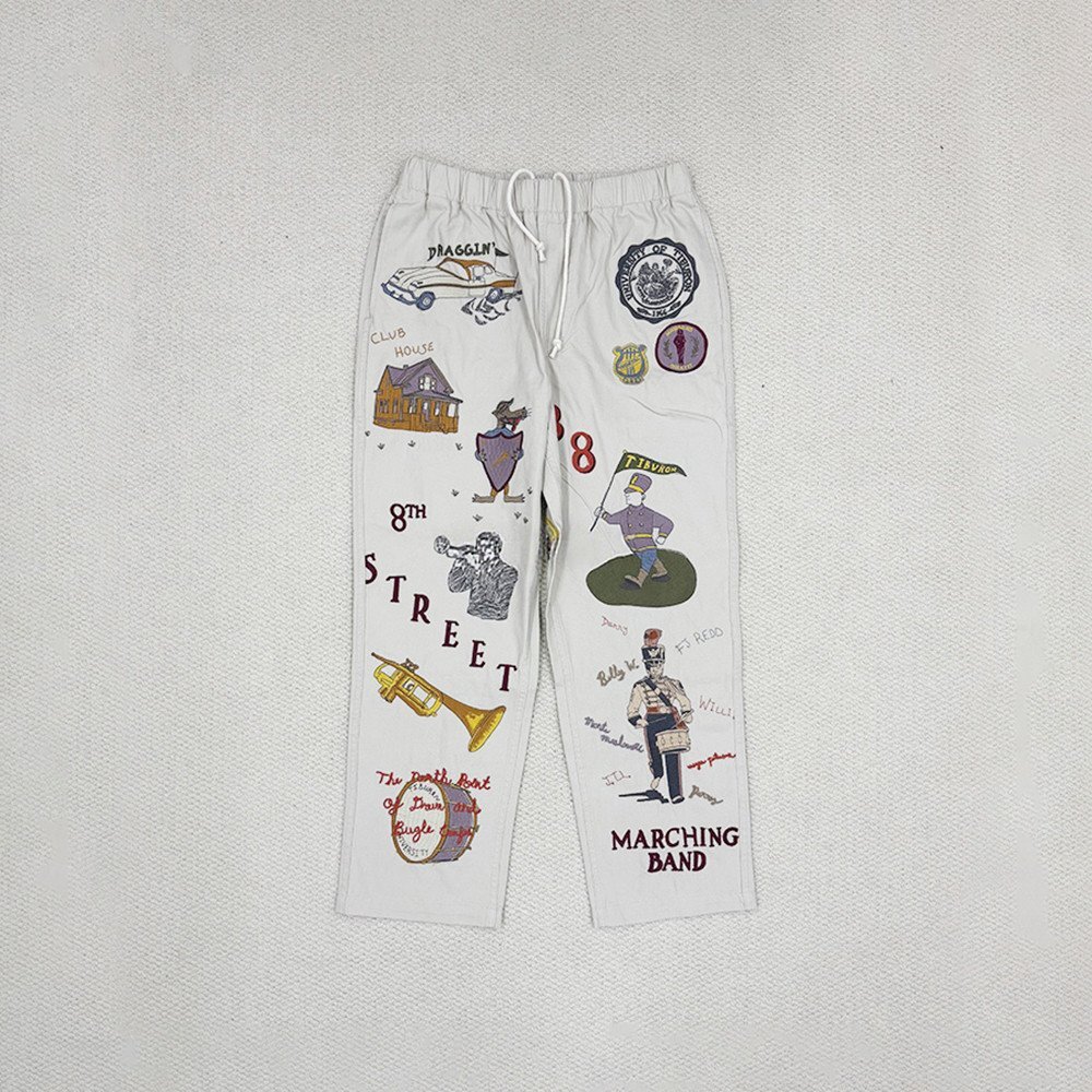 Samuel Zelig アップリケ ワイドパンツ メンズ ロングパンツ オシャレ 白 ボトムス Lサイズ |