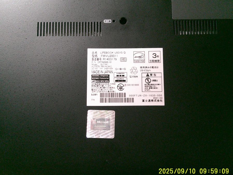 富士通 LIFEBOOK U9310 バックカバー ボトムパネル 底板 補修パーツ部品 交換部品パーツ U939用リフレッシュパーツ 16