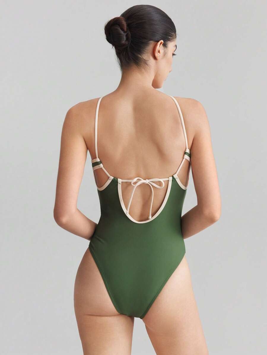 レディース 水着 ワンピース 2025年新作 快適カジュアルスイムウェア、バックレスカットアウトデザインとリボン付き女性ワンピース