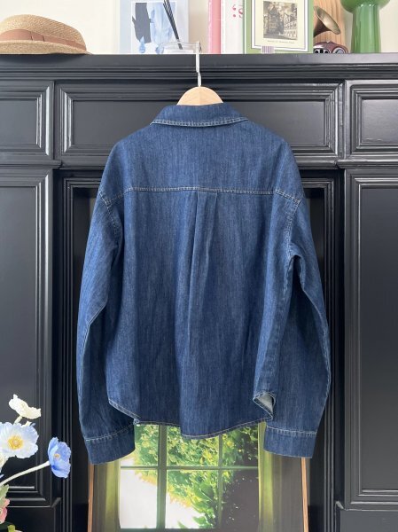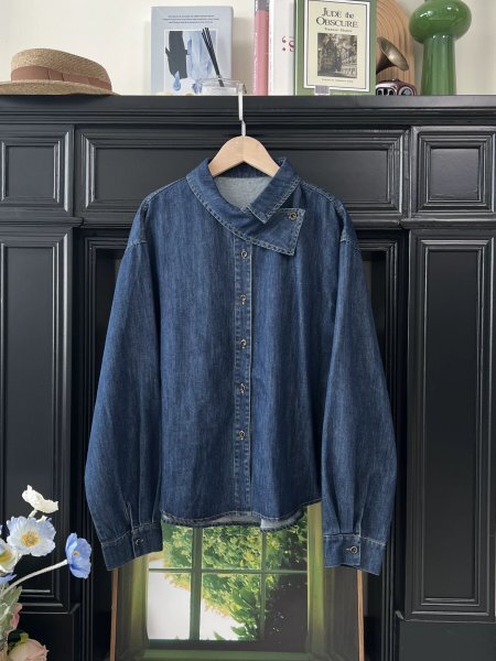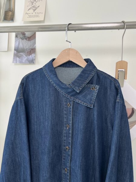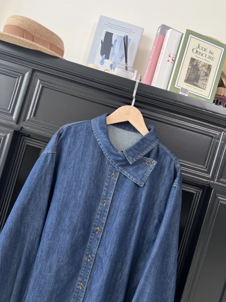 ns 2509 ネイビー デニム生地 チュニック トップス ワイシャツ 綿100% ゆったり フリーサイズ ナチュラル
