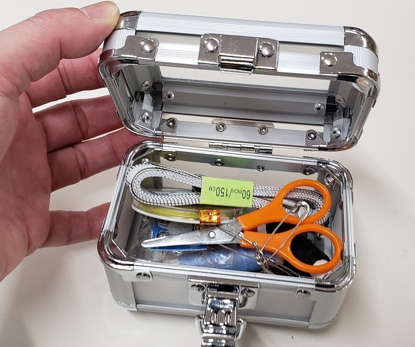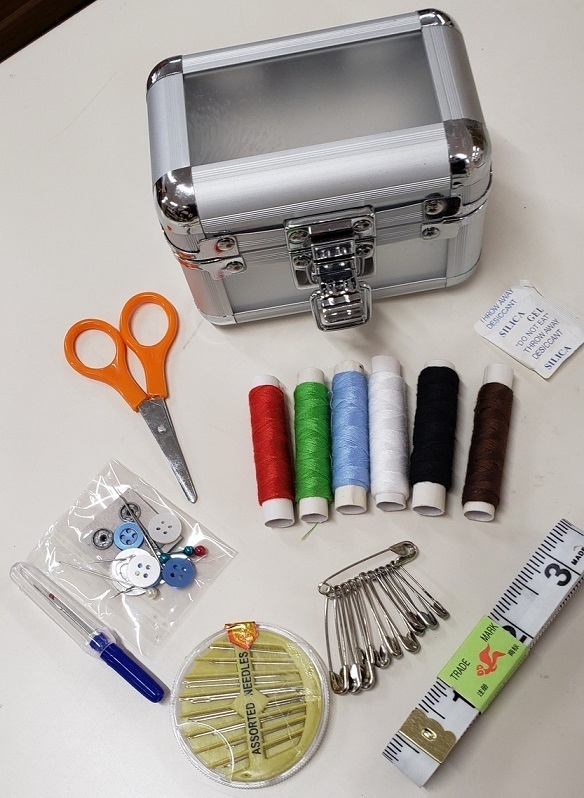 内容 | はさみ、糸(6色)、ボタン、スナップボタン、針、待ち針、糸通し、糸切リッパー、メジャー(1.5m)、安全ピン |