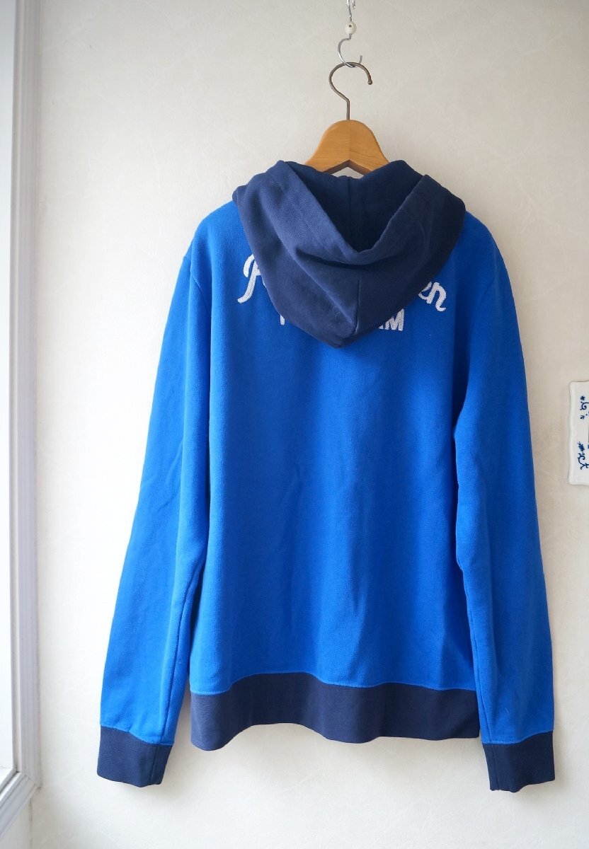 ブルー配色切替や、ロゴ刺繍がアクセントになったジップパーカーです。