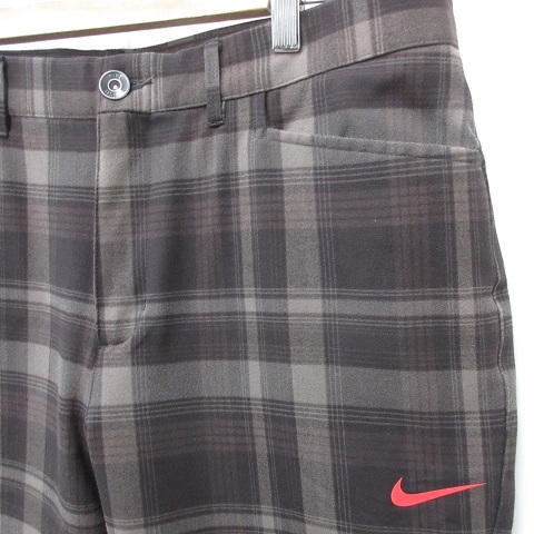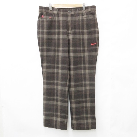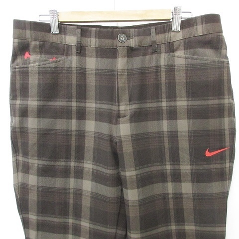 ナイキゴルフ NIKE GOLF パンツ スポーツ ロング ストレッチ ロゴ チェック柄 微起毛 茶 ブラウン 35 メンズ