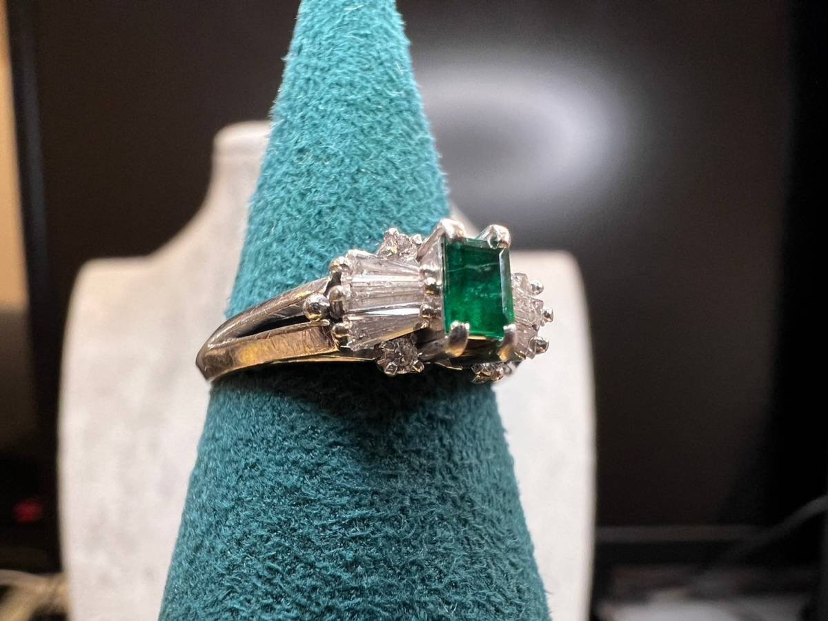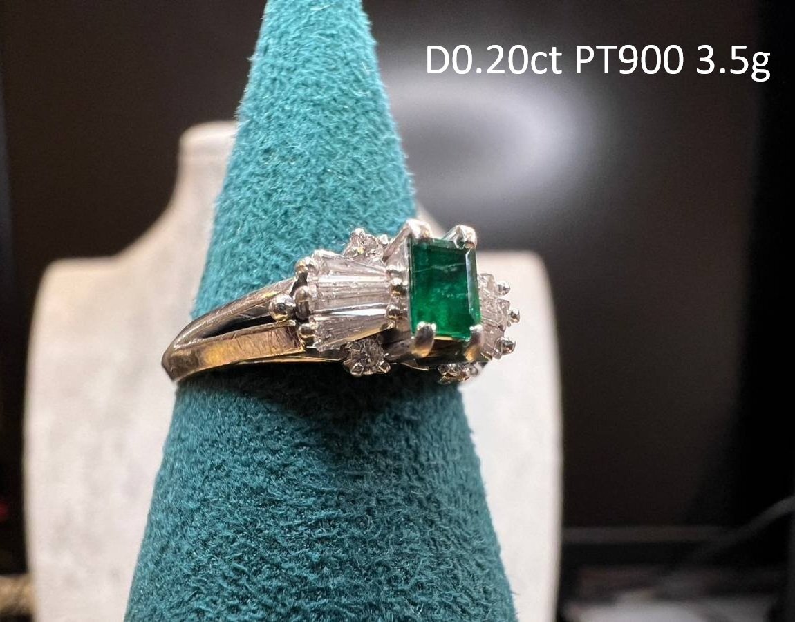 プラチナ エメラルド リング ダイヤモンド ダイヤ D0.20ct PT900 3.5g リング(貴金属) レディース メンズ ジュエリー ヴィンテージ 指輪